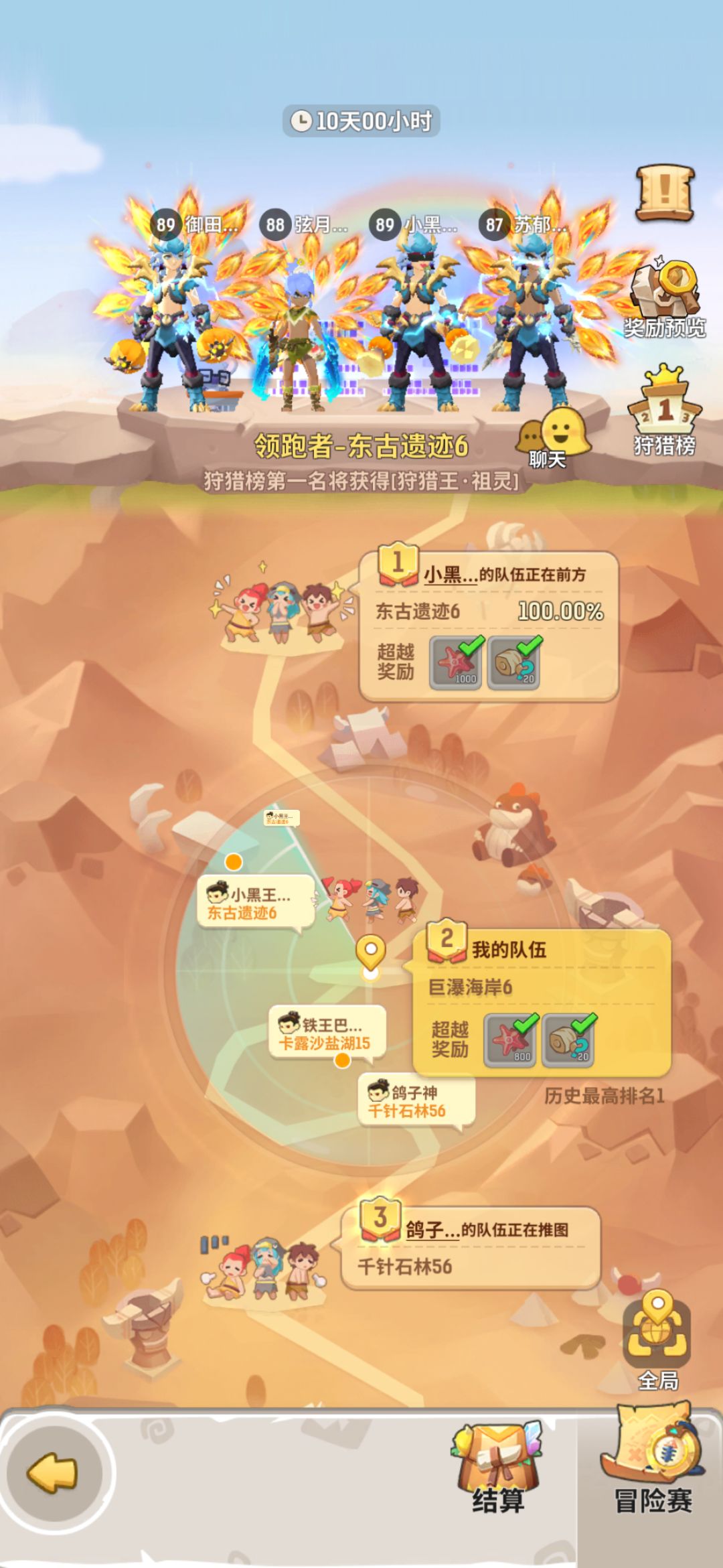 1.提前组好队友 2.9.50点集体在线 3.商量好谁玩什么职业,谁发队伍ID,方便快速组队 4.10点准时进入新团,快速输入队伍码进入队伍 5.集体在线推图,解锁牧场,选择经验,10分钟后集体11级, 【空余时间输入礼包码】 6.进入雨林后,装备强化到11级,技能抽取13次,平均提升到4级 7.此时很多人队伍还没组好,你此时可能就是领跑了,在雨林33后,集体吃食物到15级,解锁宠物 8.后续就是