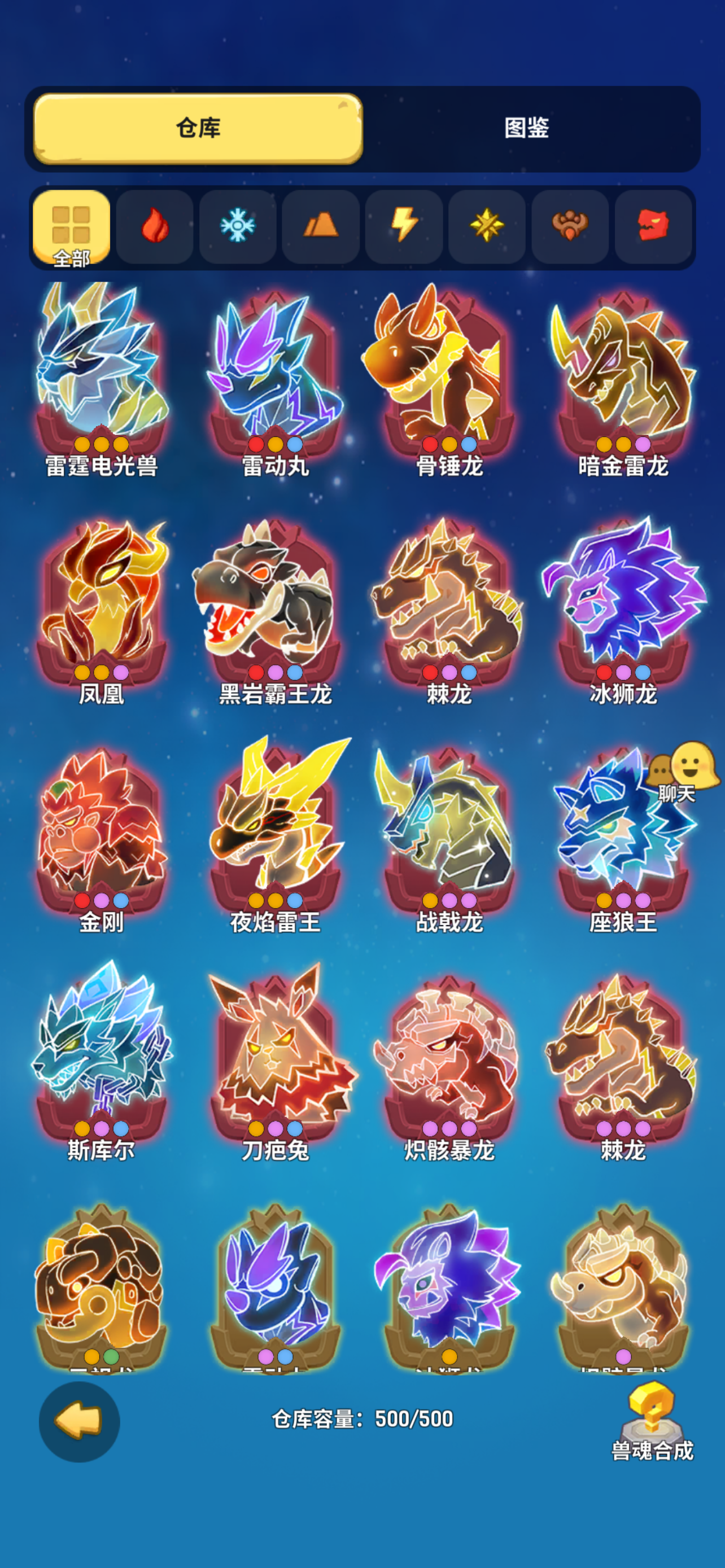 这玩意7个元素,每个元素5种兽魂,仓库只有500容量?紫色兽魂不能存着,必须消耗掉呗!?