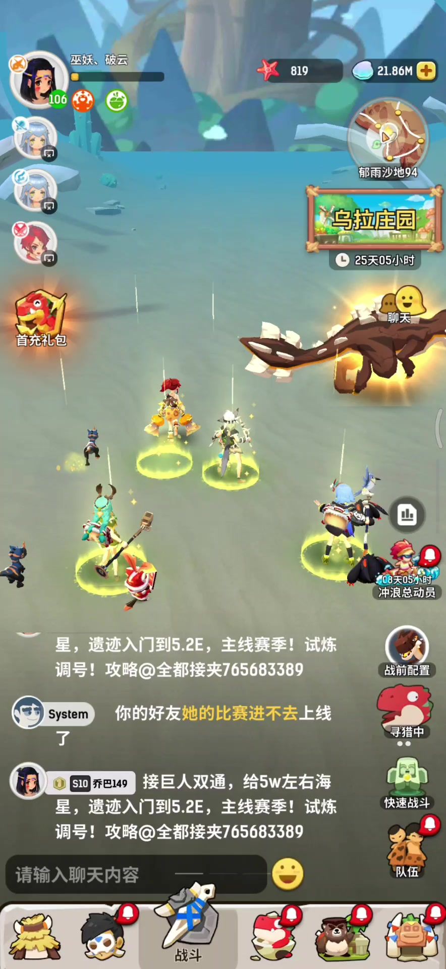 嘿!各位在地图里努力奔跑的冒险者们:一个人刷图是荒野求生,四个人的推关才是狂欢派对!你是那个深夜钻研技能序列的“最强军师”吗?还是那个每次抓宠物都空手而归的“非酋本酋”?或者是那个全队卡关、你却在营地偷偷烤肉的“顶级大厨”?快来参加我们的【乌拉拉小队“大揭底”】活动! 大声喊出你队友的名字,不管是夸赞还是吐槽,今天咱们就要让全服都知道——你的队友到底有多“敢”!🌈 【参与方式】 在