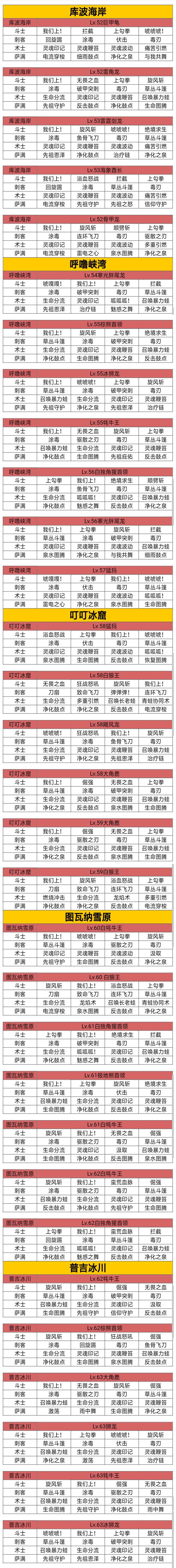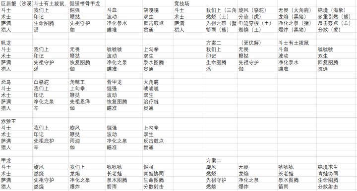 由于我把秘境打法放在普吉嗒冰川里面,导致精华帖被吞,我也无能为力,心态是真的崩了,所以我只能打字给你们发出来,你们也体谅我一下。狮龙战 作战动员(土),屹立,重拳,唬哈术 灵魂印记,灵魂鞭笞,灵魂波动,暴力蛙刺 草丛斗篷,荼毒,破甲突刺,毒刃萨 净化之泉,泉水图腾(土),恢复图腾,先祖恩泽宠物带电火飓风龙战 屹立,无畏护盾,作战动员,不屈意志术 灵魂印记,灵魂鞭笞,灵魂波动,暴力