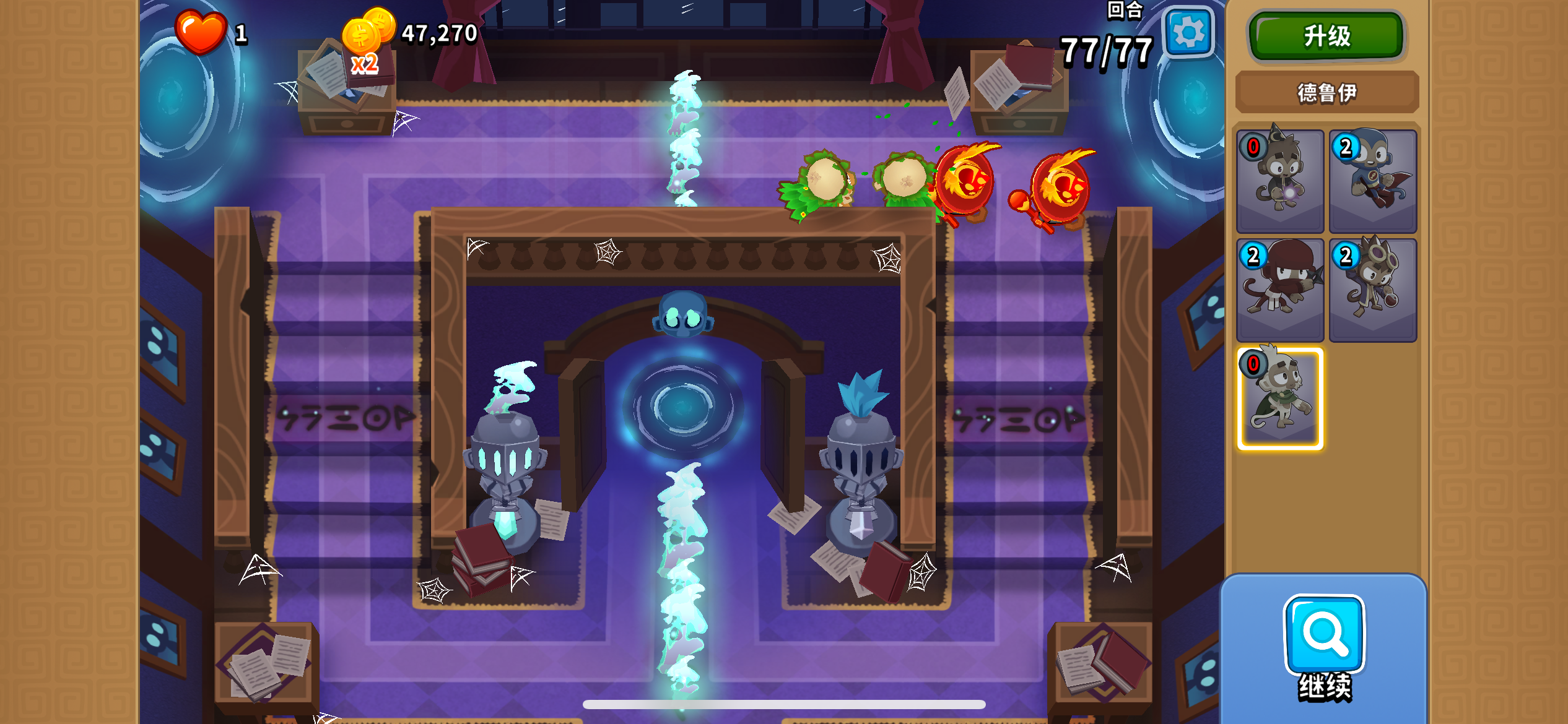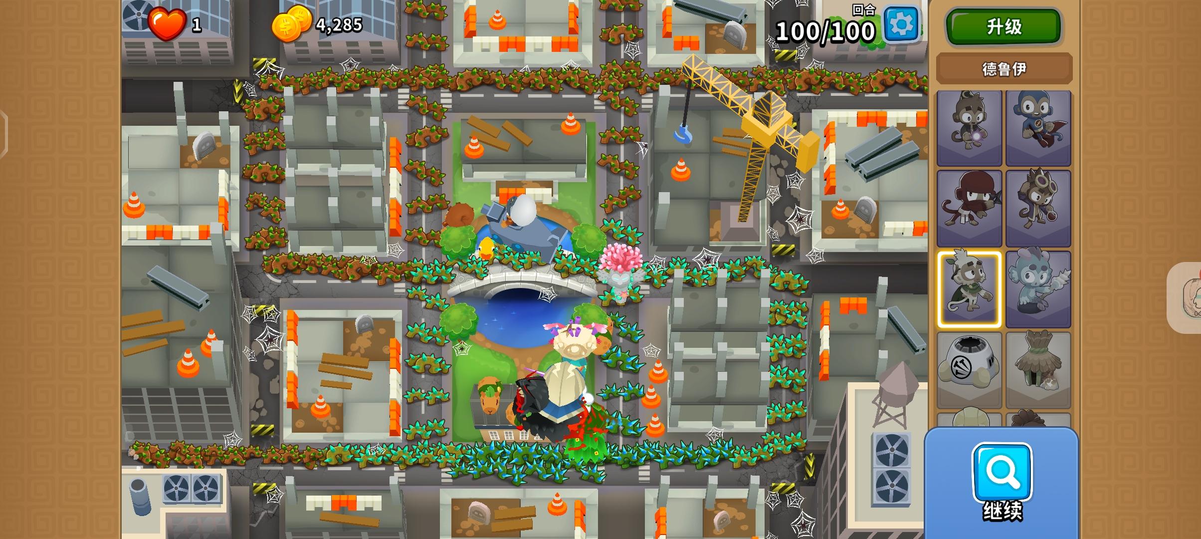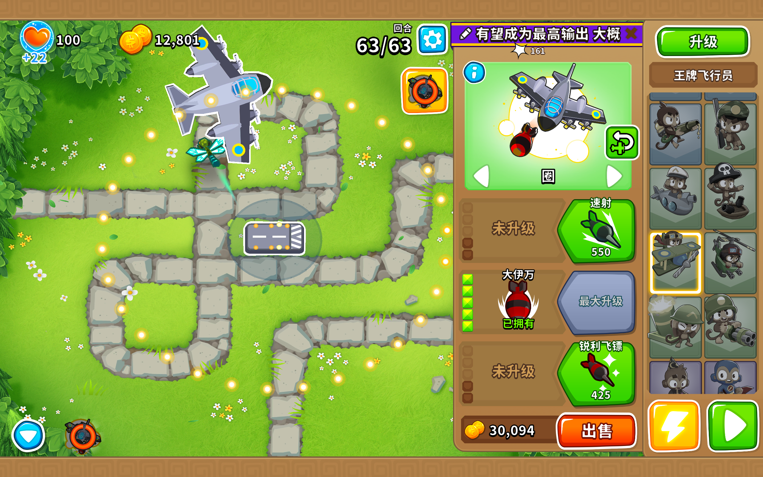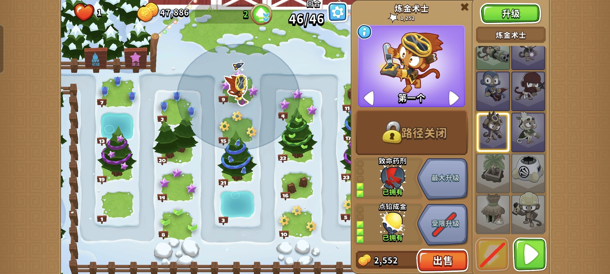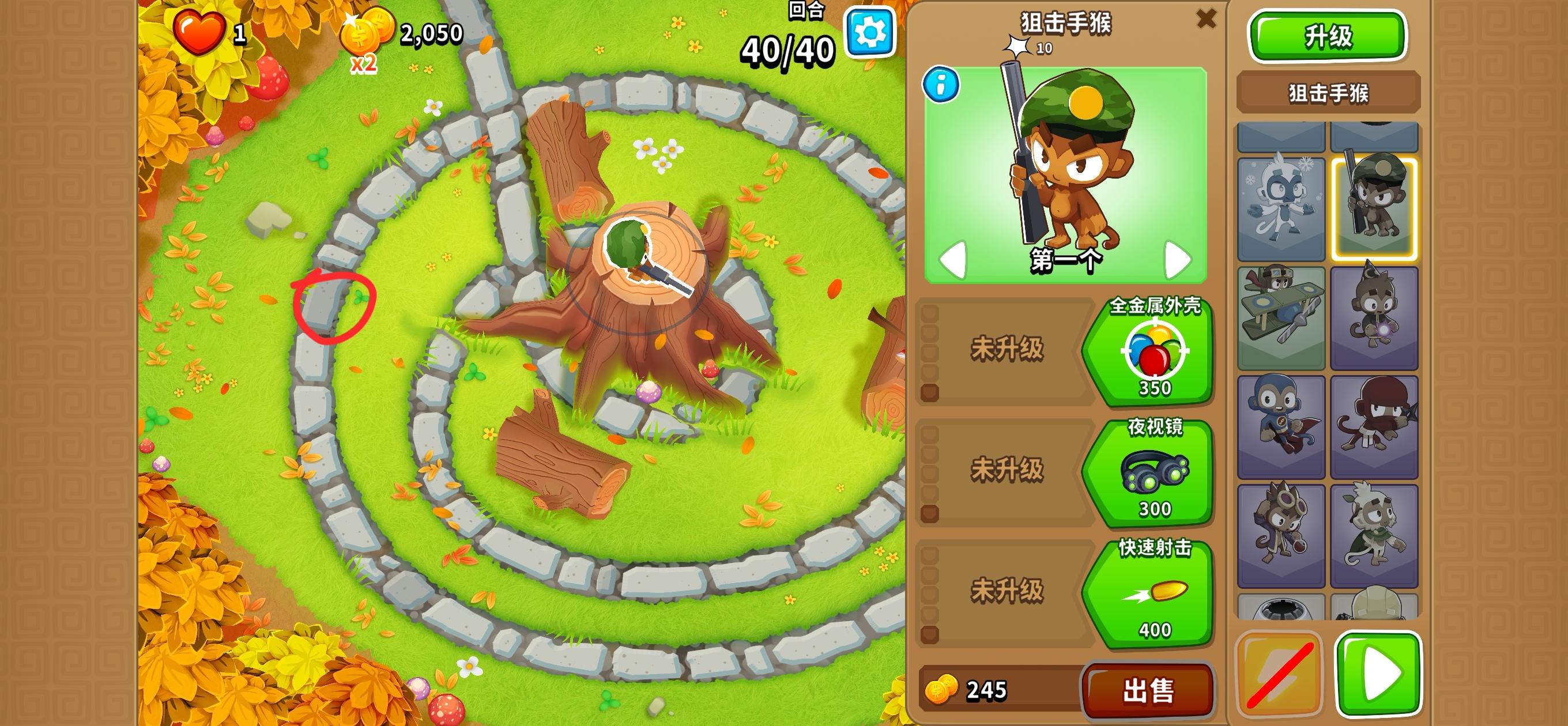 2.2~2.3高级挑战 等飞船到了图中颜色比较深这块砖就放狙击猴在树桩上,不需要任何操作,最后一滴血通过
