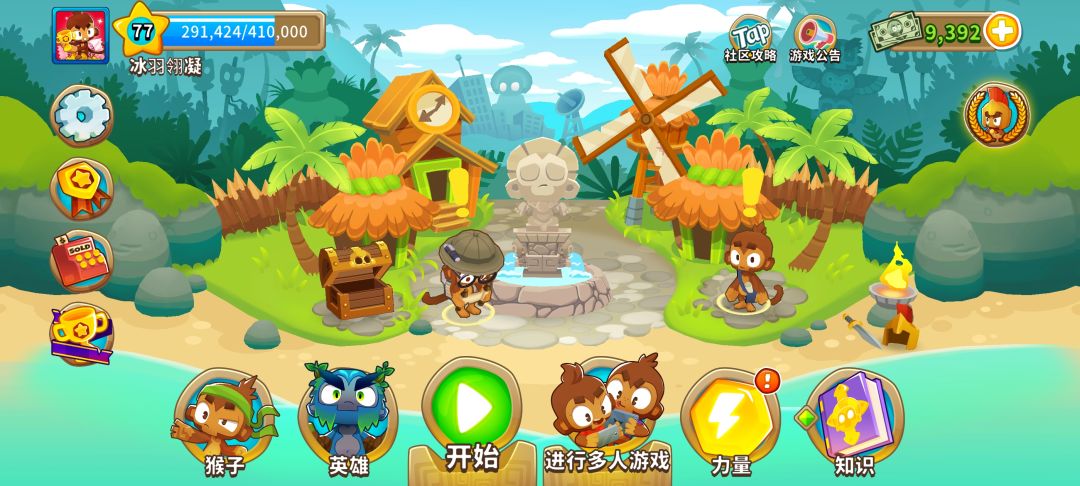 前期萌新非常容易被迷彩和铅气球偷家 至少在24关前有破迷彩的能力 至少在28关前有破铅气球的能力 注意下这两个节点,就很容易通关40回合 而送的昆西就很强,5级反迷彩,7级就能破铅 如果没有足够的猴钞就用昆西开图 做做成就任务,打打地图首胜,慢慢积累猴钞 或者直接氪金,解锁下面两个英雄就能爽刷气球 萨乌达,虽然是一个近战 但是一刀一群气球,非常解压 建议直接充钱拿下,前期非常爽 因为萨乌达无视迷彩