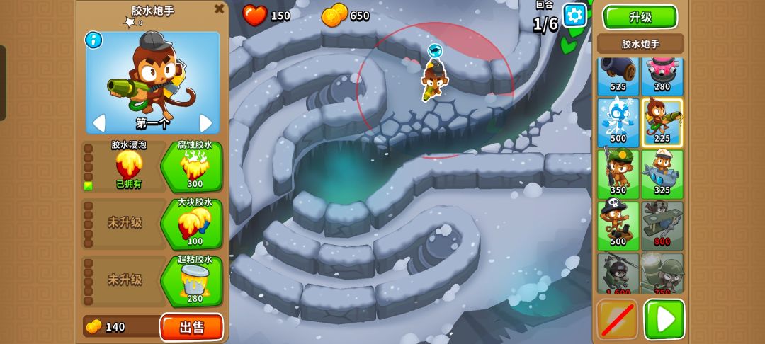 1 准备阶段 把德鲁伊放在台子上,胶水炮手放角落 德鲁伊升010,胶水100 2到第四回合结束时有420工厂,胶水和德鲁伊中间挤一个000猴村(猴村不用升级) 3挂机#球个攻略#气球塔防6