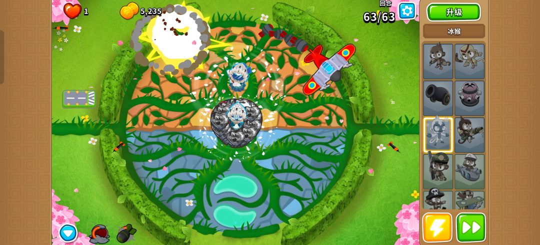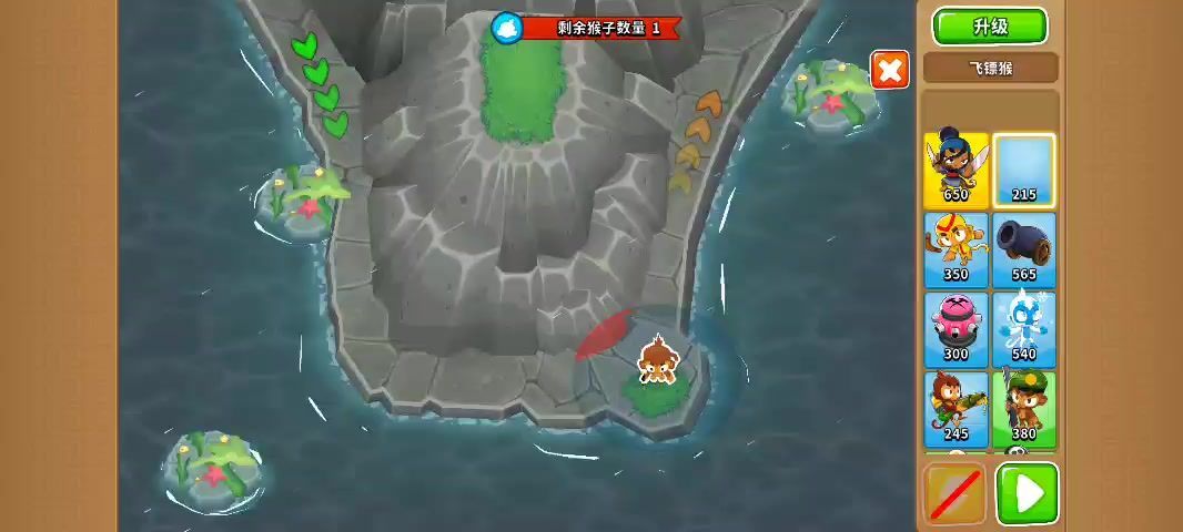 草地右上角放一只飞镖猴,别开加速模式,多试几次