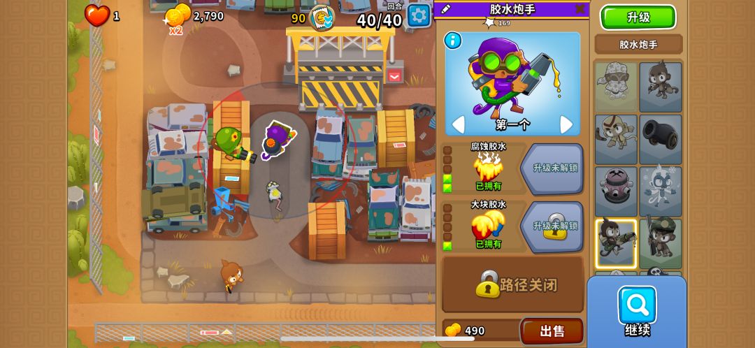 如图,猴村先点120,等一会钱够了再点220。#气球塔防6