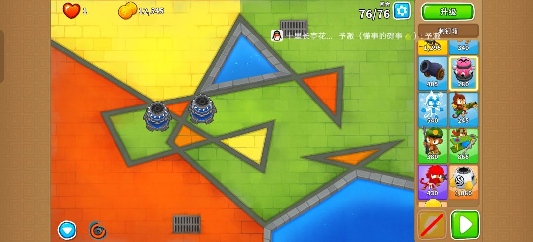 1.你需要准备以下东西: 2.选择黑暗城堡的通货紧缩模式 先放420猴村 底下放205图钉塔,作为主力输出 中间放402刺钉用来破铅 402刺钉收尾清理MOAB留下的气球 刺钉塔一回合涨5w+经验 无双金无知识打法 继路人w的建议 使用如下的阵容(双金低配版) 可以搭配我的其他攻略食用:#气球塔防6创作有奖征集#气球塔防6创作狂欢派对