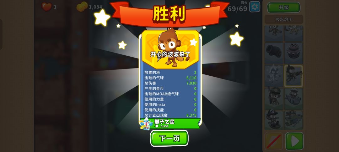 先在拐角处放下400冰猴,然后在图上这个位置放下300胶水,钱够了马上先升级冰猴中路一级,然后升胶水中路一级。就能成功通过! PS:昨天有自己的事情要忙,所以休息一天,今天就可以继续为大家更新新的高级挑战攻略了。祝大家520快乐!#今天游戏圈发生了啥 #单机游戏 #气球塔防6 #游戏攻略 #游戏日常