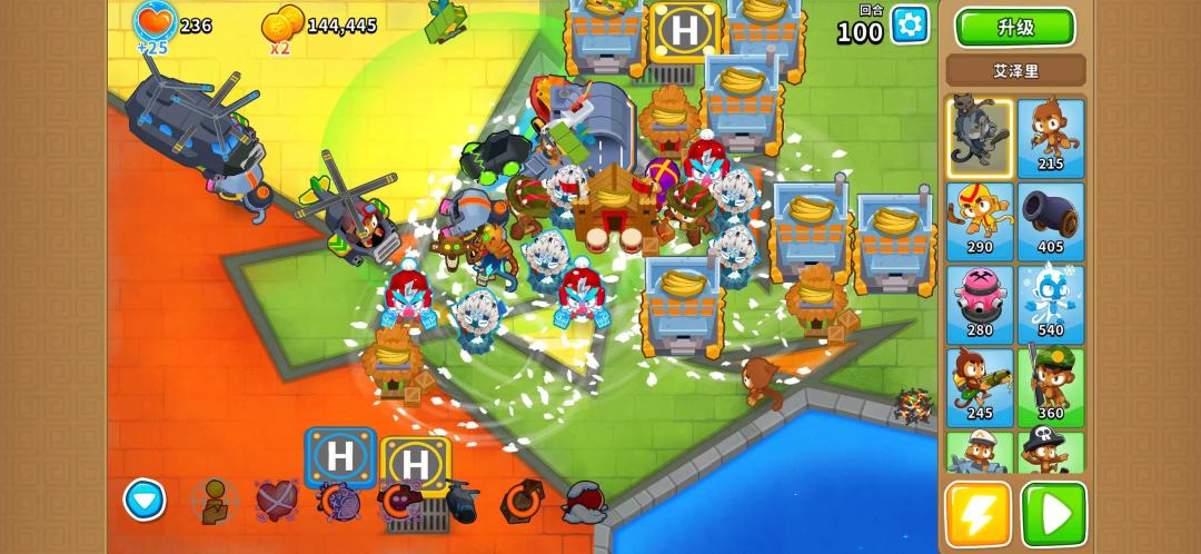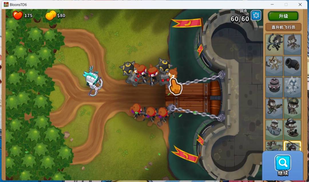 1.你需要准备以下东西: 2.选择黑暗城堡的通货紧缩模式 放置300潜艇猴帮助反隐 另一端放置025潜艇猴,作为主力输出 旁边放两个024潜艇猴,吃025的buff 潜艇猴一回合获得60000+经验 可以搭配我的其他攻略食用:#气球塔防6创作有奖征集#气球塔防6创作狂欢派对