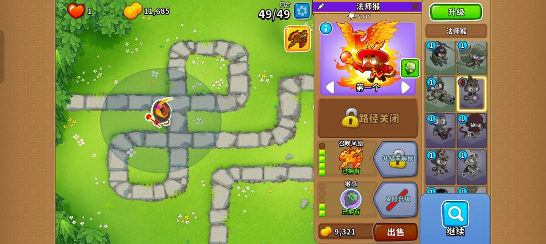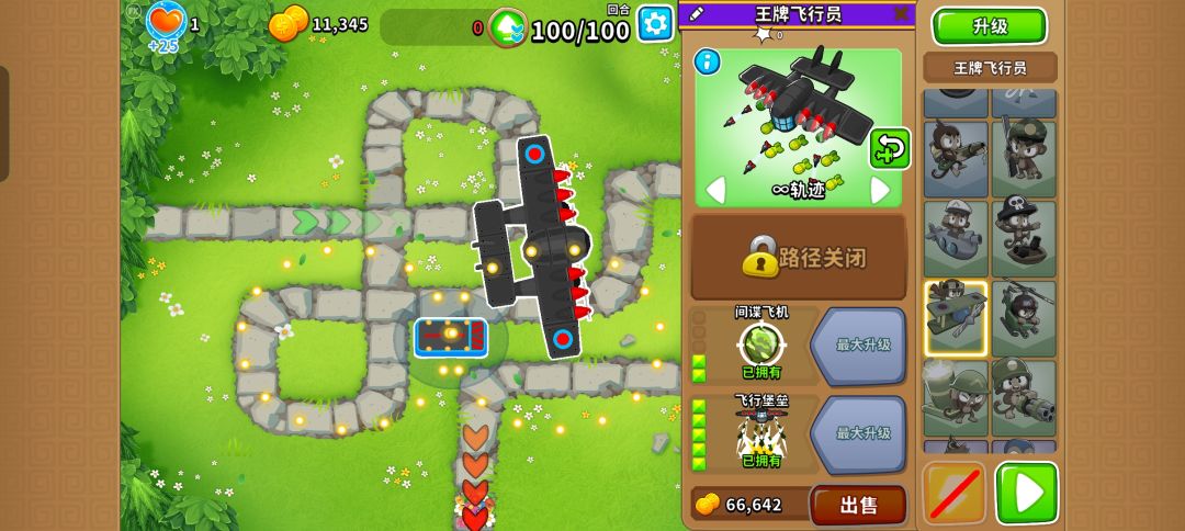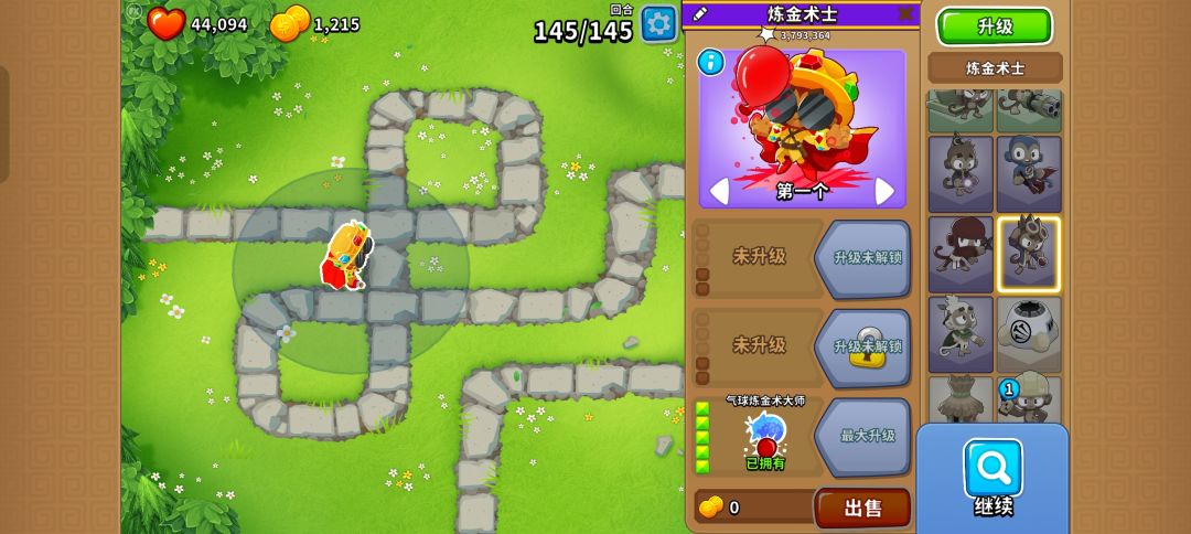 202猴村+250超猴+520大炮+420炼金+502狙。先放202猴村减价,一直用超猴技能。#攻略 #气球塔防6