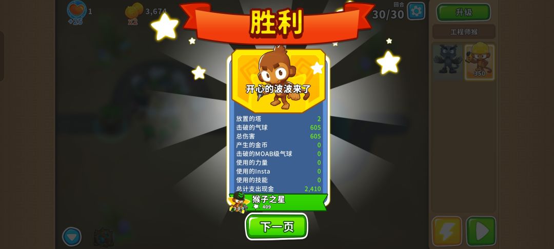 抱歉晚了点,是因为今天也有好多解法,我来推荐四种简单的解法。 用320海盗猴放在中间紧贴下方的路线就能做到一只猴子也能通过。 在右上角放下204潜艇再在图中间放下230海盗猴也能轻松通过。 双直升机也是可以的,无需中路,把其中一个升到上路三级在补上下路两级就行。 甚至还可以在图中间放下402人鱼猴,再在右侧额外放两个002人鱼猴增加他们的攻击范围,也能轻松通过!我相信大家也有自己的解法!#今天游戏