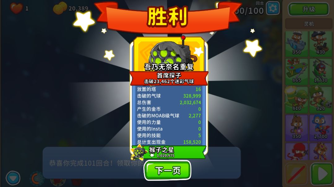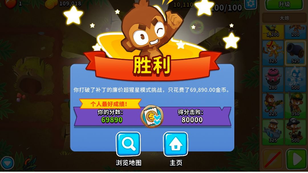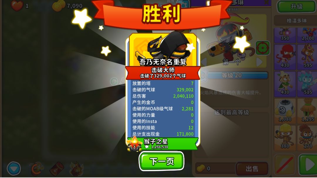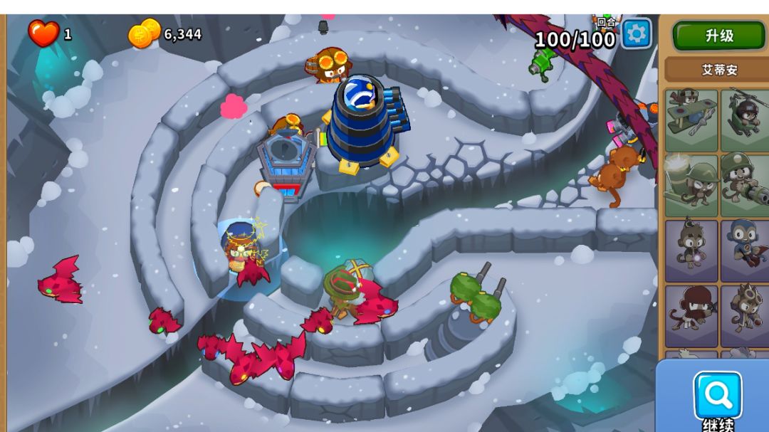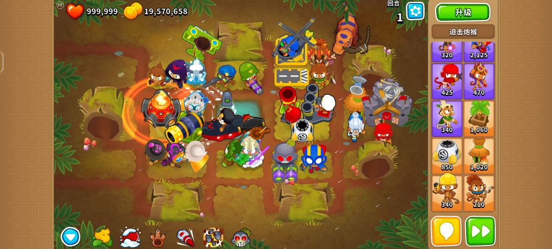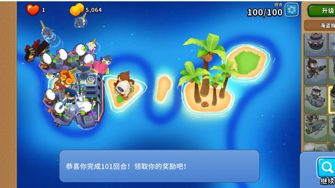 英雄:海军上将布里克尔。注:她的1技能是非常强力的辅助,记得多放 一:开局 1,一个毛毛和忍者,搁到中间的岛上,忍者还可以用来清前期迷彩 2,一个海盗猴,卡着岛和路的缝里放 3,出英雄,放那个圈的中间,开局无恙 二:40回合前 1,把忍者升到301,清前期迷彩 2,把海盗猴点到320,配合英雄技能足以过飞艇,求稳可以再补一个310海盗猴,后面的海盗猴都只点到310 二:中后期 1,出一个猴村,靠右