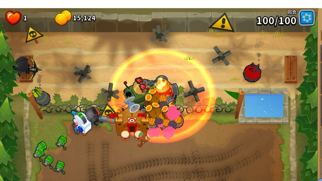 英雄:萨乌达 一:开局 没什么好说的,萨乌达摆上就行,摆到道路相交的叉叉的上面或下面,紧贴着放 二:40回合前 1,在萨乌达对面紧贴着叉叉放回旋镖猴,点到402,要注意事项:回旋镖猴每隔一回合换手,换了能极限救场,不换就是夕阳红镖法。可能会有球偷跑,记得用萨乌达技能,也能救场。 2,在如图所示的地方放刺钉塔,点到402。 3,在如图所示的地方放猴村,点到300,不然打不过飞艇 二:40