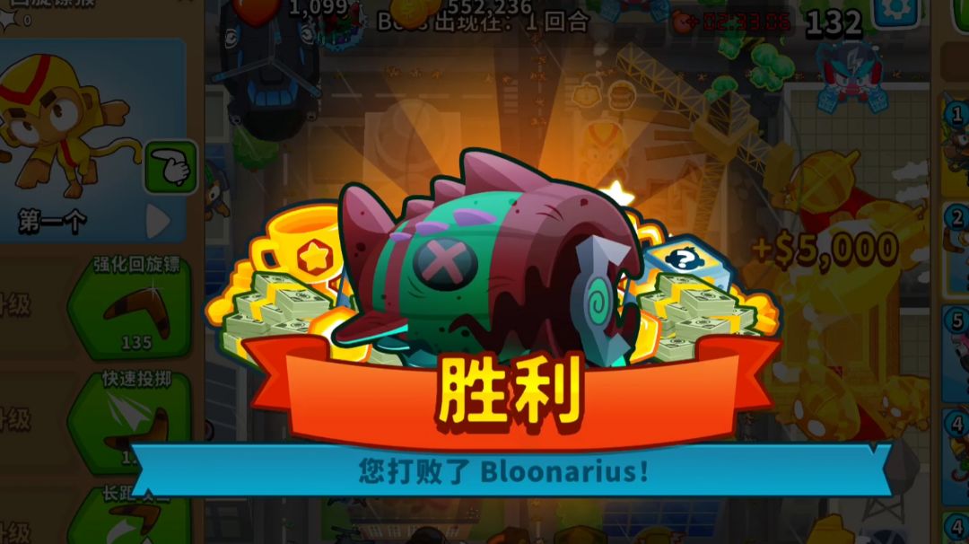 英雄:萨乌达 一:开局 1,三毛开局,就是三个毛毛,全部摆到右上角 2,在主道路下面也是从右往左数第五个珠子下面放一个回旋镖 3,放一个萨乌达,紧贴着主道路即可 二:40回合前 1,把回旋镖升到302 2,在从右往左数第4个柱子哪儿放一个机枪猴,先不用升级,瞄准出口锁定 3,把回旋镖点到402 4,把机枪点到203。注意事项:期间不太容易漏球,但最好用一下萨乌达技能。飞艇用机枪手操能打的过 三:4