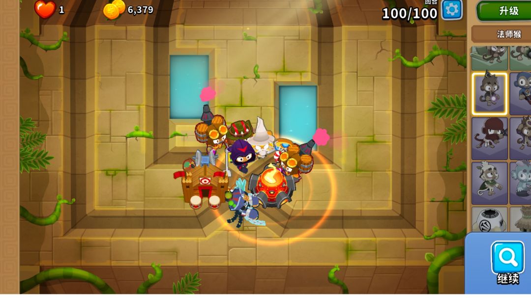 英雄:灵机 提示:照片里的猴子摆放很重要,虽然我这么摆有点问题,但问题不大 一:开局 1,毛+狙开,摆放如下即可,俩都优先打强力目标 2,陆陆续续再补上3个狙,前俩打强力,最后一个打第一个 3,攒钱,出灵机(灵机离狙和毛远一点)。把之前的一个强力狙改第一个,再补两个狙,一个打强力一个打第一个。 4,出一个德鲁伊,升030-130 5,在灵机旁出直升机,升302,然后可以打飞艇了 二:中后期 1,出