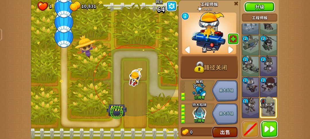 把冰猴、法师、狙击猴拉满,012狙击猴一定要点强力。#气球塔防6