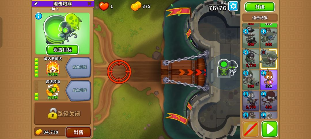 520迫击炮,目标放交叉口。#攻略 #气球塔防6