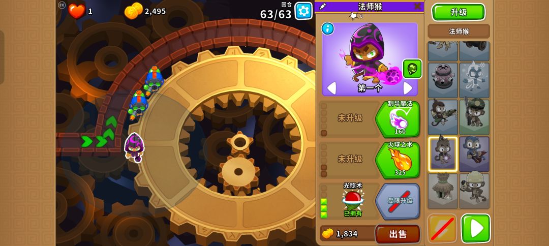 双金过法: 150德鲁伊(升完会自动调强力) 非双金过法: 520猴村#攻略#气球塔防6