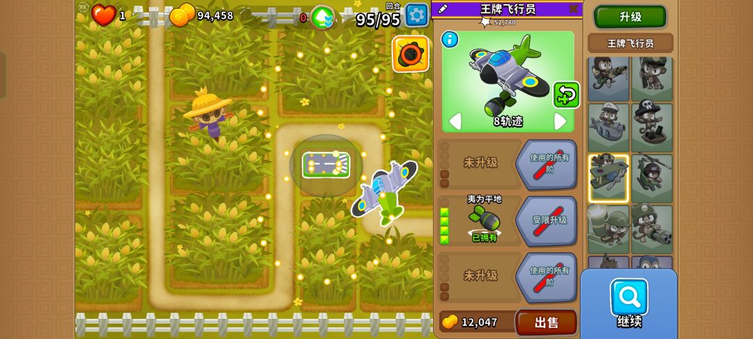 040飞机,调8轨迹,挂机,靠小炸弹清小气球,等所有moab进场放技能。#攻略 #气球塔防6