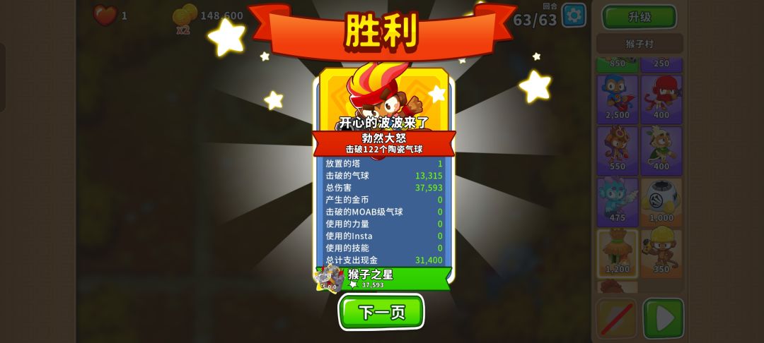 非双金: 1 520飞镖猴 2 502迫击炮,瞄准中间 双金: 1 500胶水 2 500回旋镖#攻略#气球塔防6
