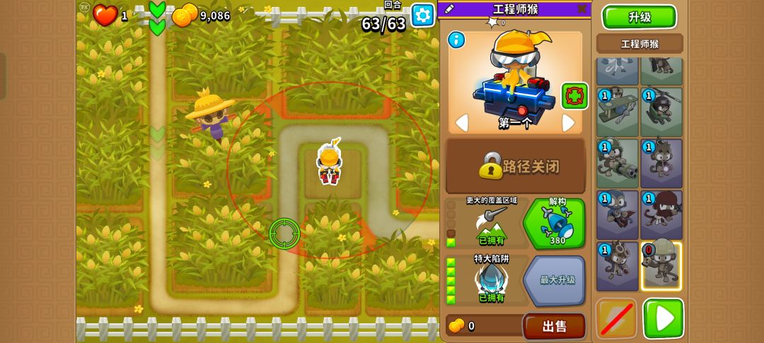 1 015工程师,开始放在左边,收完二波陶瓷以后换到右边。 2 520冰猴,严格放在图中位置(范围在两个土地的角上往上一点点),升520。 大家除夕快乐!#攻略#气球塔防6