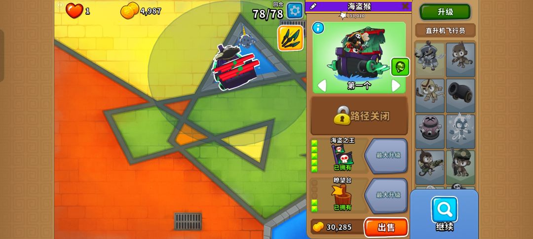 052船,开局051,有钱升052,bfb用技能。#攻略 #气球塔防6