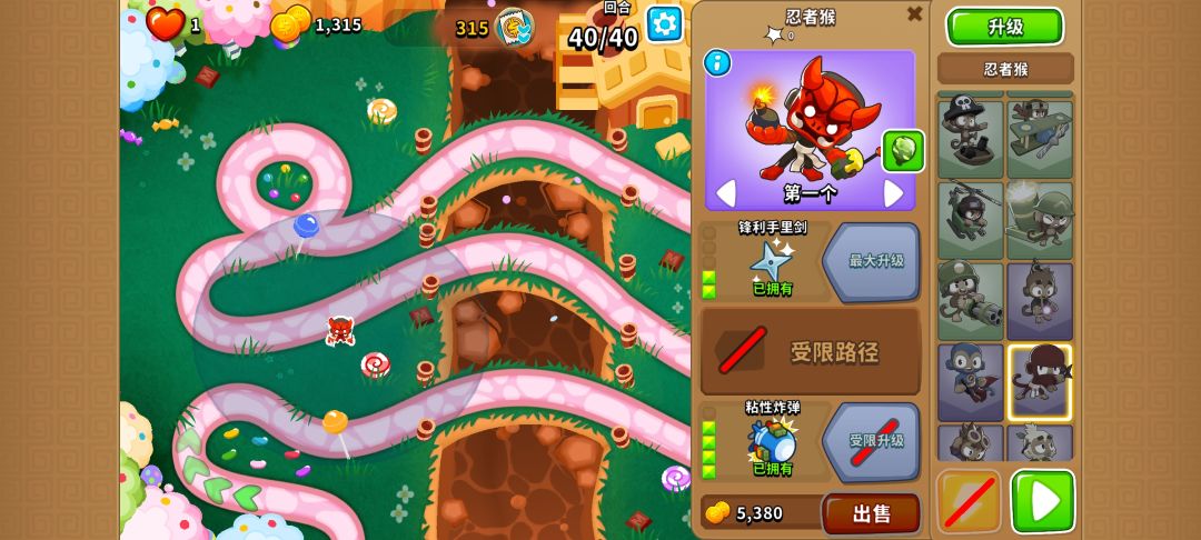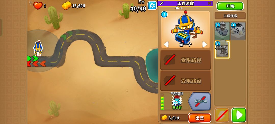 202猴村+250超猴+520大炮+420炼金+502狙。先放202猴村减价,一直用超猴技能。#攻略 #气球塔防6