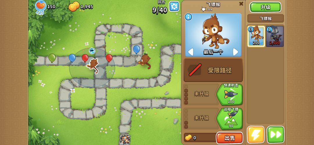 本期每日比高挑难得多,我这个攻略应该是首发 无双金无力量过关条件:点出初级知识的开局多200块和力量知识的开局送一堆刺钉和支援知识的猴子售价提升5% 开局双000毛毛,合理调整攻击目标守到11波 12波放超猴,注意贴着路钉放(重点) 24波迷彩拿路钉扎掉 28波前超猴升100 28波猴子破不了铅,但是路钉可以,在路钉扎爆铅之后,贴脸放置的超猴可以秒杀爆出来的部分子气球,保护路钉,从而扎爆第二个铅气