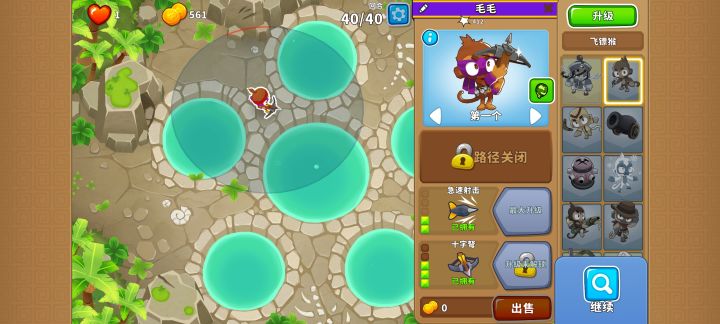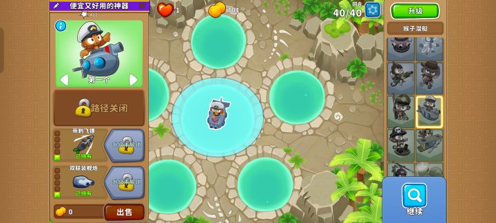 如图所示,放置020狙击手猴,然后再升级到120,轻松拿下#气球塔防6 #高级挑战