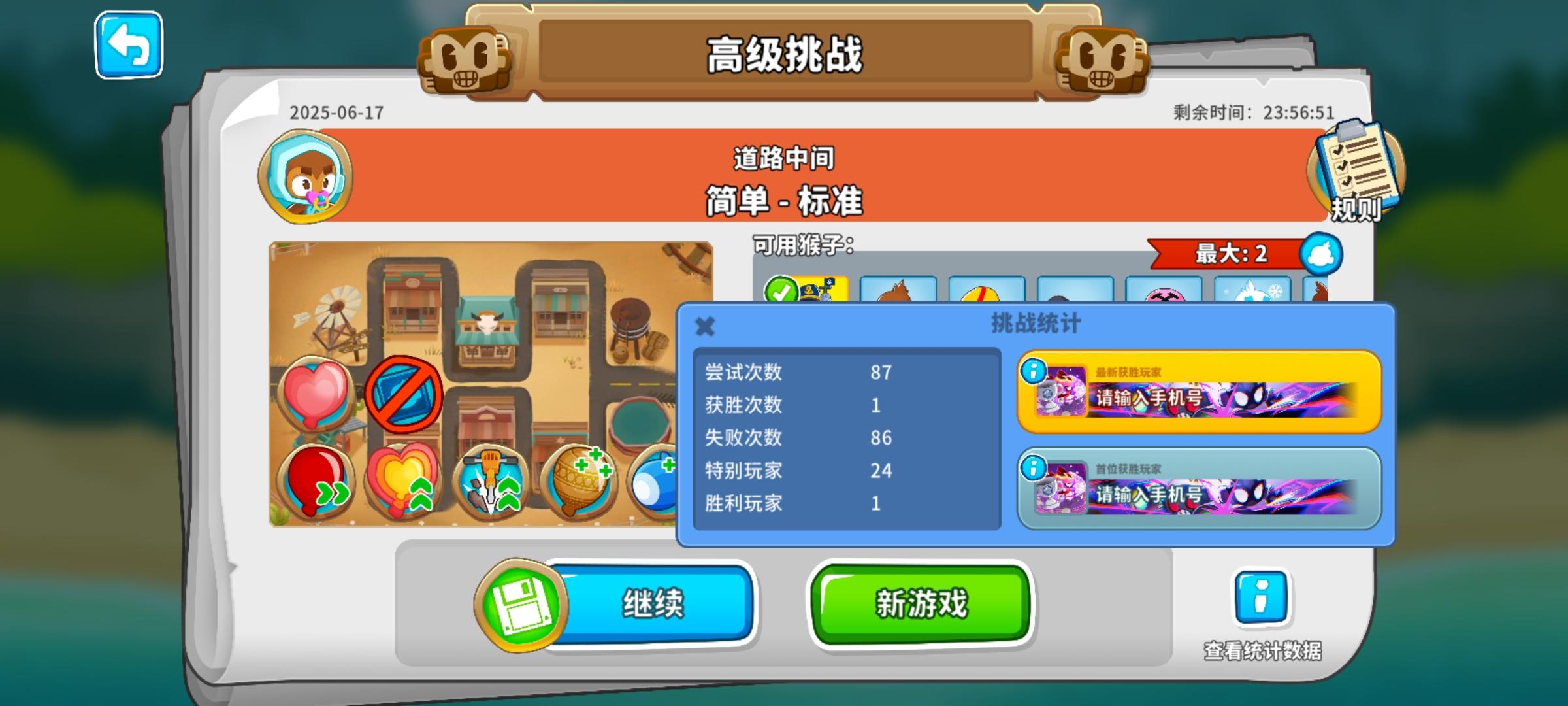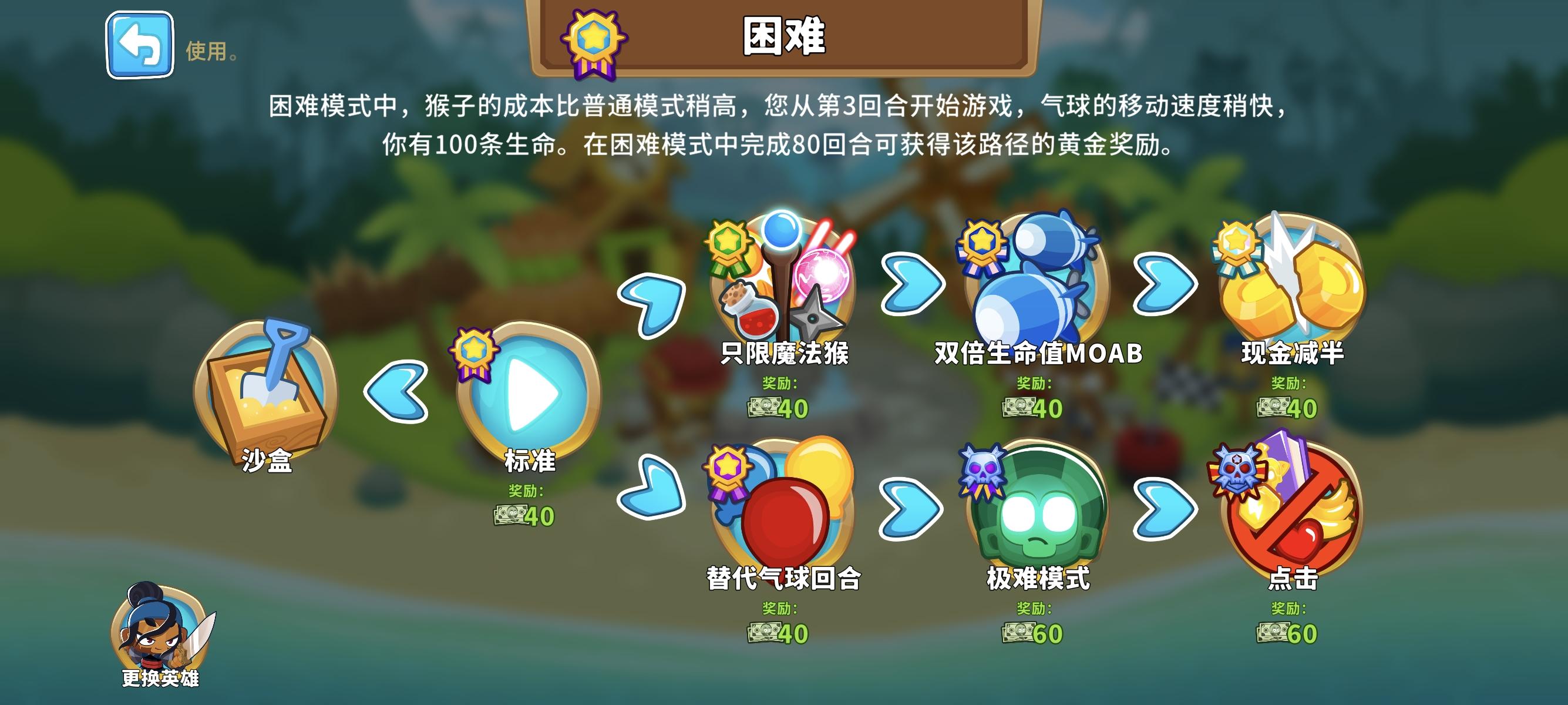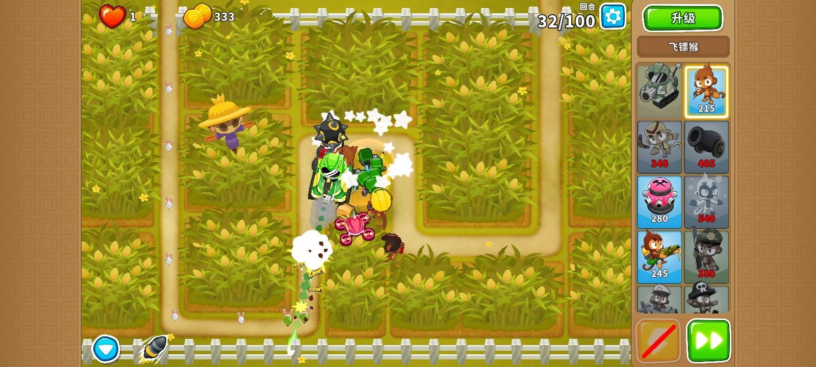 今天的普挑会比高挑稍微有些难度,想要一猴通关几乎难如登天,需要根据回合穿插破隐与破铅的猴子以下是一些我游玩的小tips:1. 唯二既能破铅又能破隐的猴子共两只,204冰猴与032工程师,需要注意的是前者无法破白气球,后者单挑打aoe伤害属实堪忧2. 含铅气球的回合有:28,30,37,38,45(加固铅)3. 含迷彩气球的回合有:24(一只可以不必理会),33,36(共20只迷彩重生绿气球