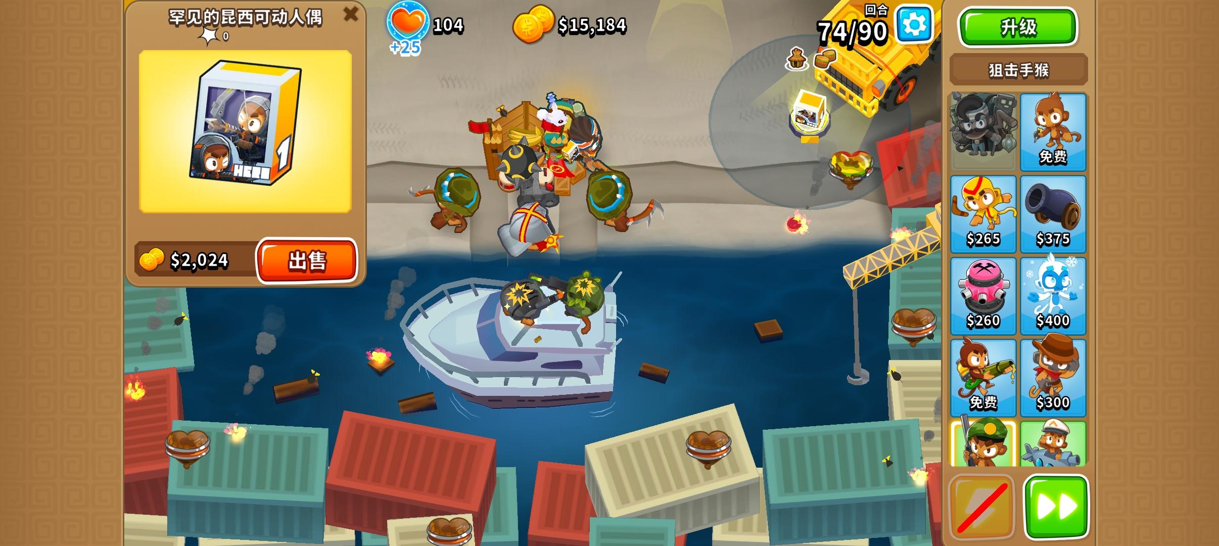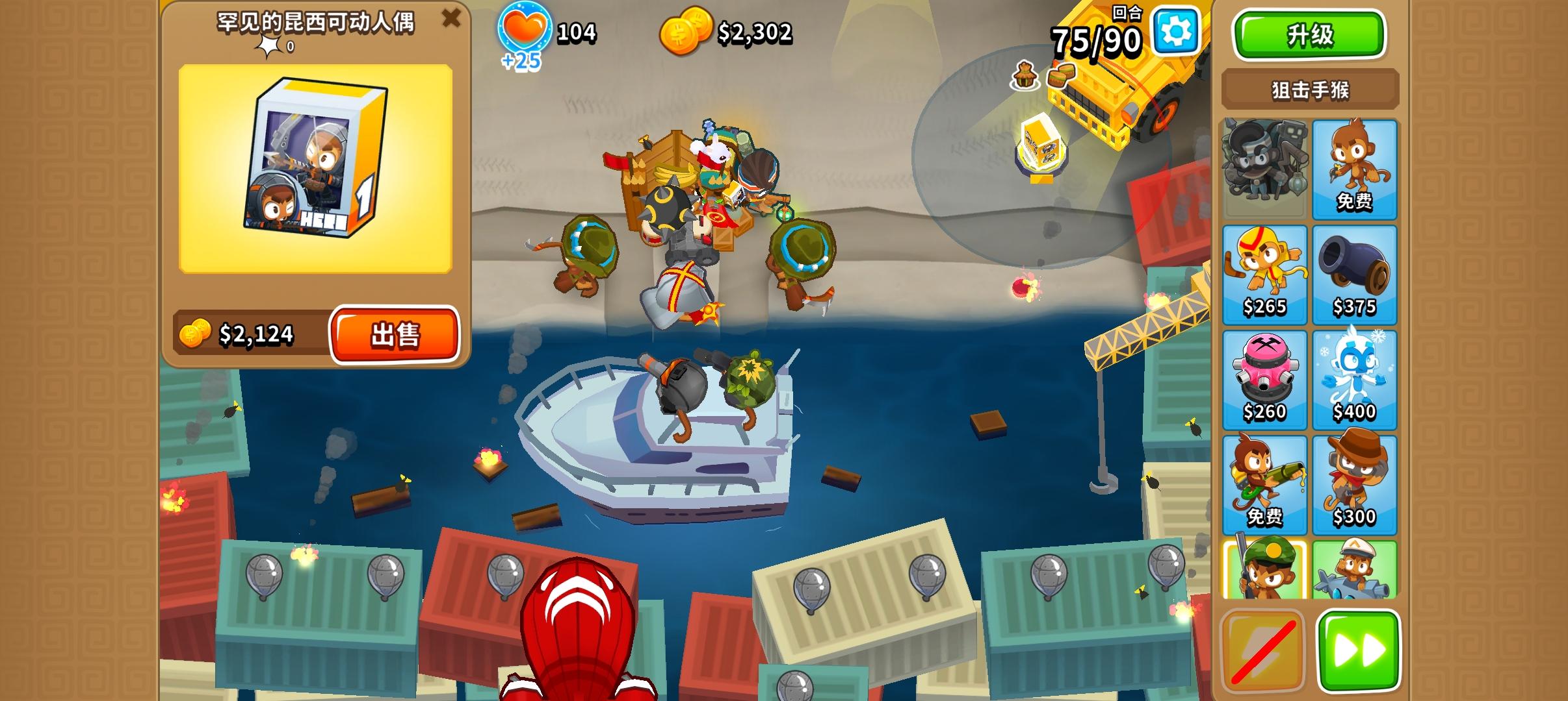 本期征程难度★☆☆☆☆我的奥本被ban了很遗憾不能再用懒人精森地毯了这期的难点在于第四张图的金币减半,相信会困扰很多新手玩家,所以英雄方面我选用了艾蒂安,以更少的花费取代020猴村提供全图探隐,起码1只毛毛用以前期的白嫖,1只回旋镖猴,以及1只狙击猴破铅+破隐 (如图1)第一张图是替代气球模式,做出英雄后直接做002毛毛用以破隐过渡,然后尽快做出100狙击目标强力,随便补些猴子,只要在40回