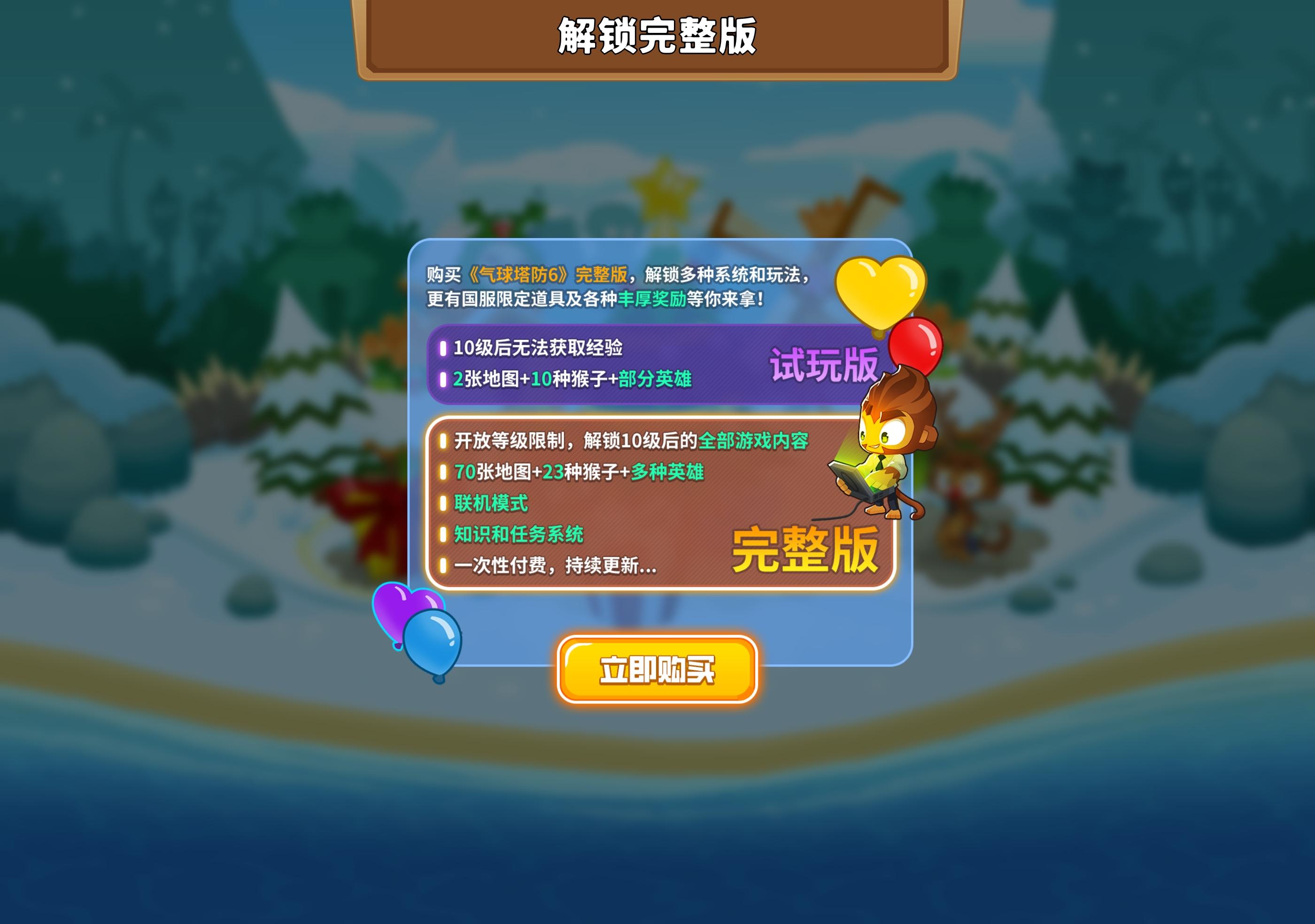 不知不觉,《气球塔防6》国服,已经陪伴猴米们度过了整整两年在这两年之中,我们和猴米们一起,体会到了:第一次被气球冲破防线的慌乱;沙盒模式中研究阵容、反复尝试之后通关的成就感;独自挑战高难度的坚持,也有和朋友们一起组队,互发表情调整战略的乐趣无论你是刚加入不久的萌新猴米,还是从开服以来,就一直陪伴着我们的大佬,我们都想向大家说一声:谢谢你,成为了猴村的一员!🥳周年礼物请查收为了
