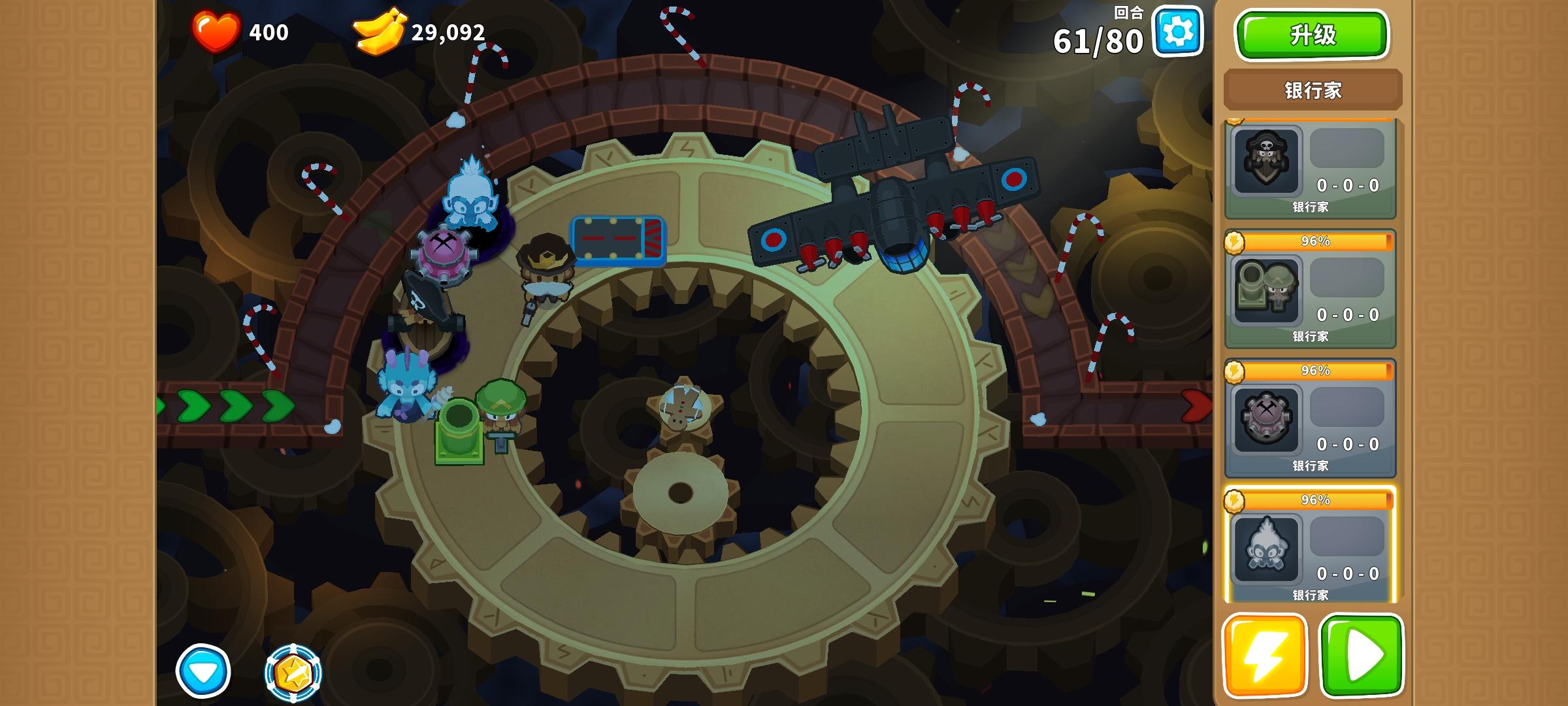 年末也能轻松做到首个通过高级挑战。因为203忍者猴就是主C,只要把它放在图上这个位置就能单挑全部气球!当然320炼金术师也是个好辅助,也能辅助302忍者猴,230王牌飞行员,需要手操的022机枪猴来轻松通过哟!最后祝大家新年新气象!#今天游戏圈发生了啥 #单机游戏 #气球塔防6 #游戏攻略 #游戏日常