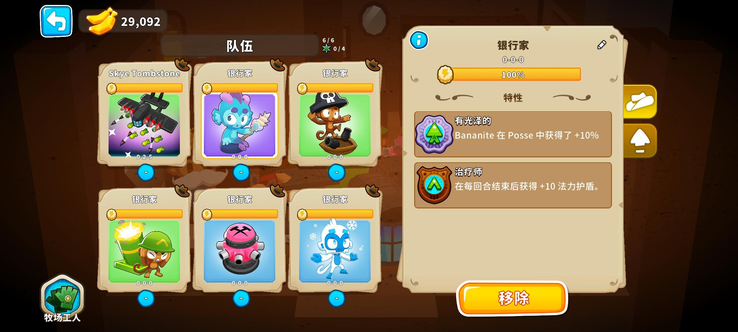 带1个全图打击的主C加5个高级赚钱NPC,警长换上搞钱装,直接60%赚钱加成去圣殿后面的隐藏地图挂机速刷齿轮(复仇气球不在我就是无敌的),挂上一轮就有一万八香蕉到账,而且打到耐力空了也不用回家,还能赖着继续刷,真是太超标了但是这个赚钱的词条是真难刷啊,刷了几十次才找到五个加10%的,扣钱的倒是不少