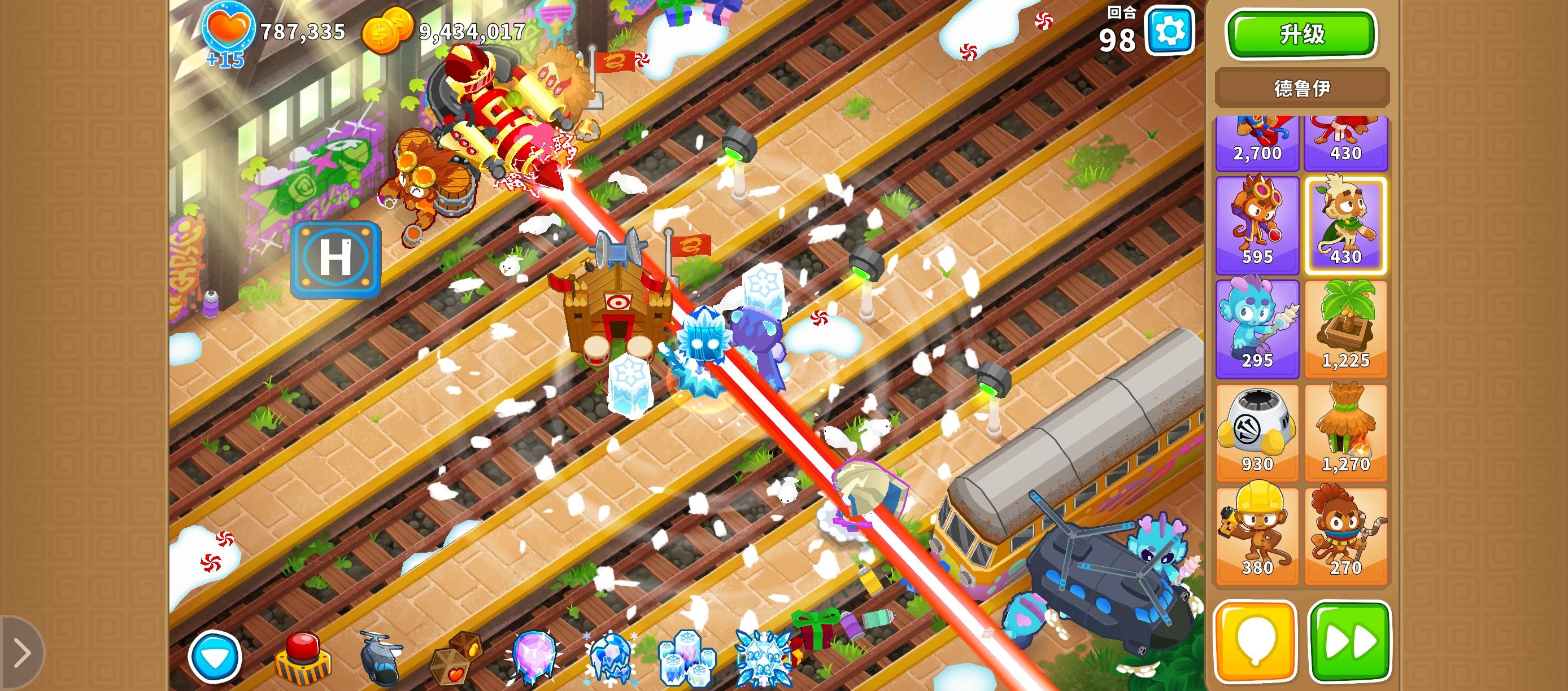 最近在研究这个新图,发现7狙根本打不了,十几个狙都不行,就一直寻思这个图。单飞行堡垒不行,这是六条路,飞艇中间爆开陶瓷两边飞。很明显要中间高穿透,最好来点控。稍微试了试,这420猴村+052冰猴是差一点距离,但是吃了炼金的药,是刚好三路覆盖。当然最直接的办法就是上西拉斯,8级西拉斯+420猴村+052冰猴也是一样的效果,三路覆盖。中间感觉500机枪最合适,但是这玩意干不过强化ddt,还得另外想