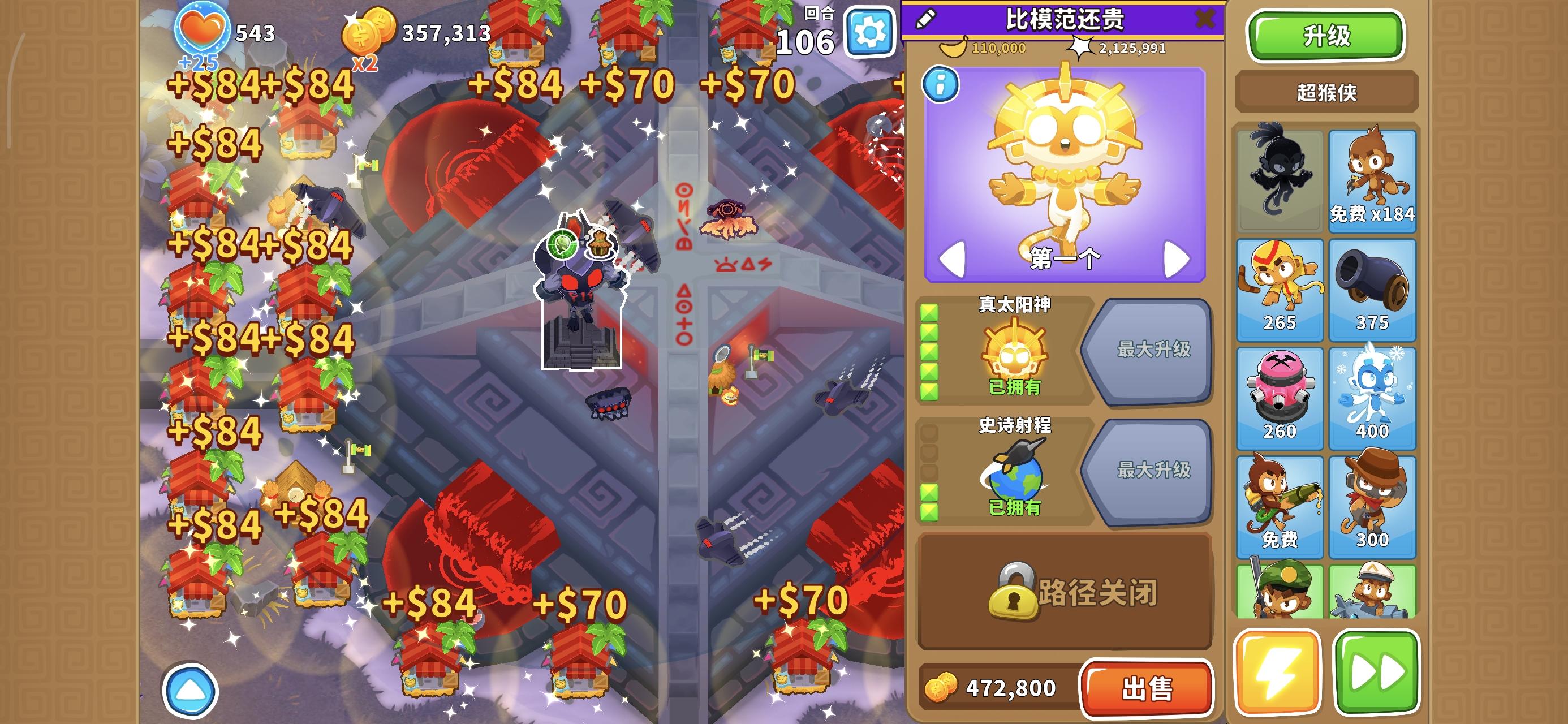 又肉又快的MOAB,确实很难硬打。那就用402狙击手猴控死它,同时两枪一个陶瓷气球!而且还能代码秒杀,先用500人鱼猴制造水域,再用040海盗猴的技能钩走就行,狂点技能刚好能在气球进家前解决它!#今天游戏圈发生了啥 #单机游戏 #气球塔防6 #游戏攻略 #游戏日常