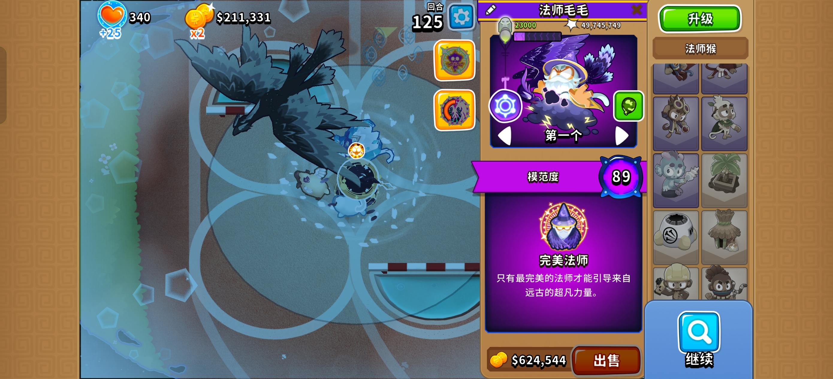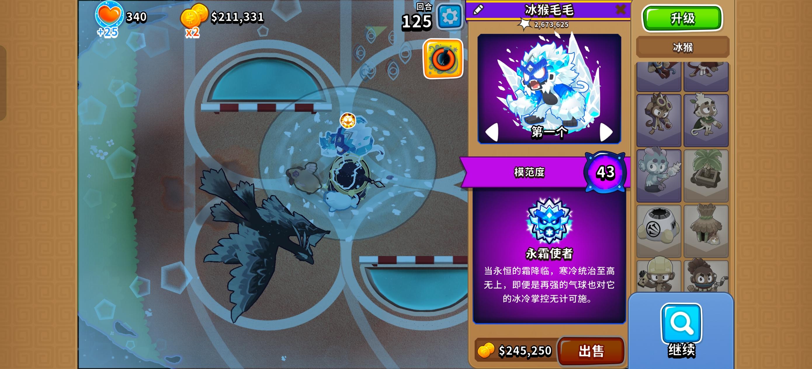 也是受猴友们启发去找精英充气机刷钱了因为是高级的八阶段充气机,为了保证战力上了之前刷钱拉的真太阳神,中路刺钉地毯顶掉一些复仇气球,还有一个缩小版国土防御。不过还是得不忘初心,剩下的位置刷了三个比较给力的加钱猴子(真能刷到加钱飞机还是挺惊喜的)。加上警长套装这套总共加钱40%,Boss战直接堆在一块,甚至连警长都不用上,迫击炮的落点也不用改,只需要不停点国土防御就能过了。还是不需要