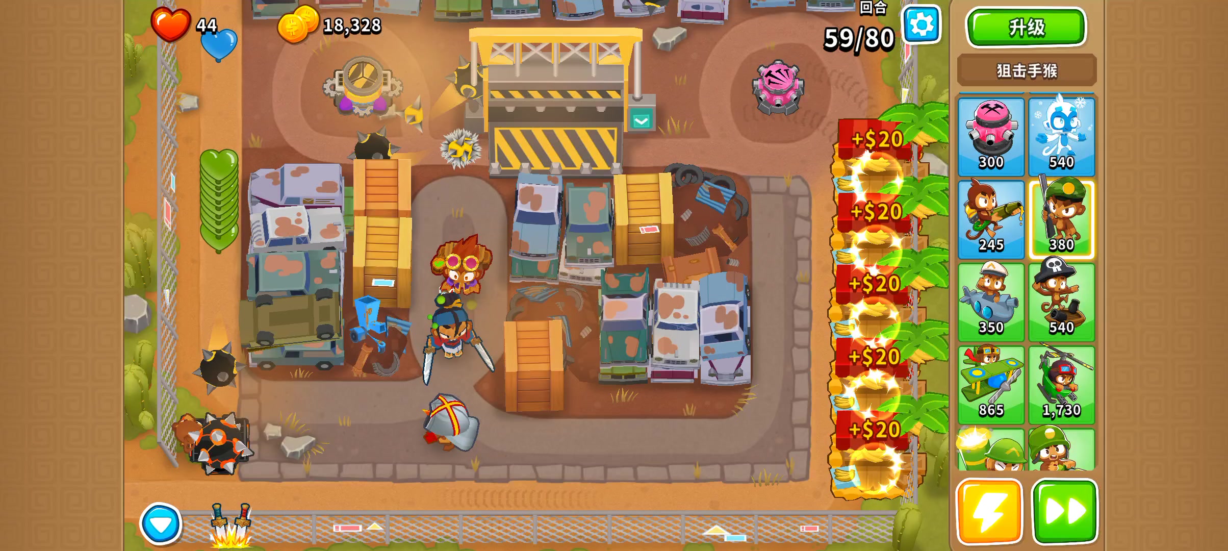 英雄放在终点处 忍者升满放在终点附近 调成强力 狙击升满 技能cd一好就点#气球塔防6创作有奖征集