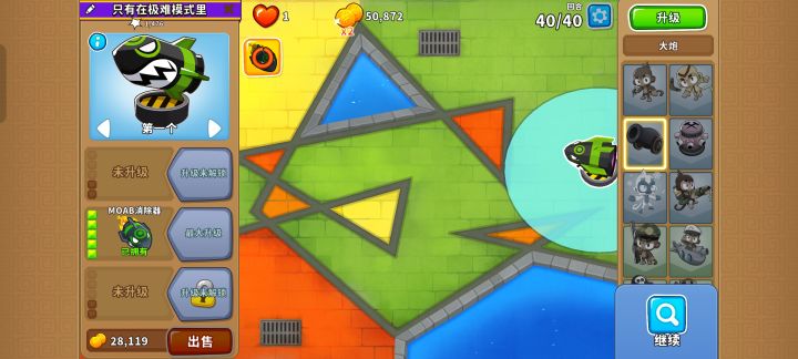 又肉又快的MOAB其实就是纸老虎,直接无脑用050大炮秒杀就行!大炮放哪里都没关系!也是难得的非常简单的高级挑战哦#气球塔防6 #游戏攻略 #单机游戏 #游戏日常