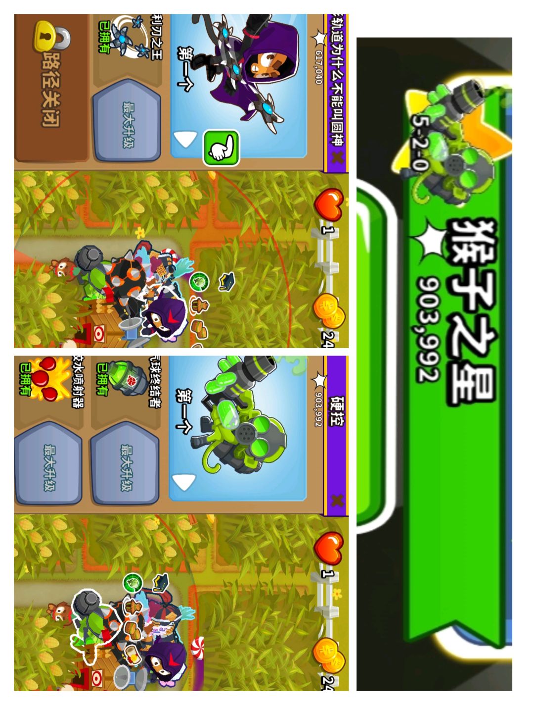 气球塔防对战2与气球卡牌风暴里的(丢炸弹邦尼,拿铁镐矿工猴,拿笔记本监工主任)