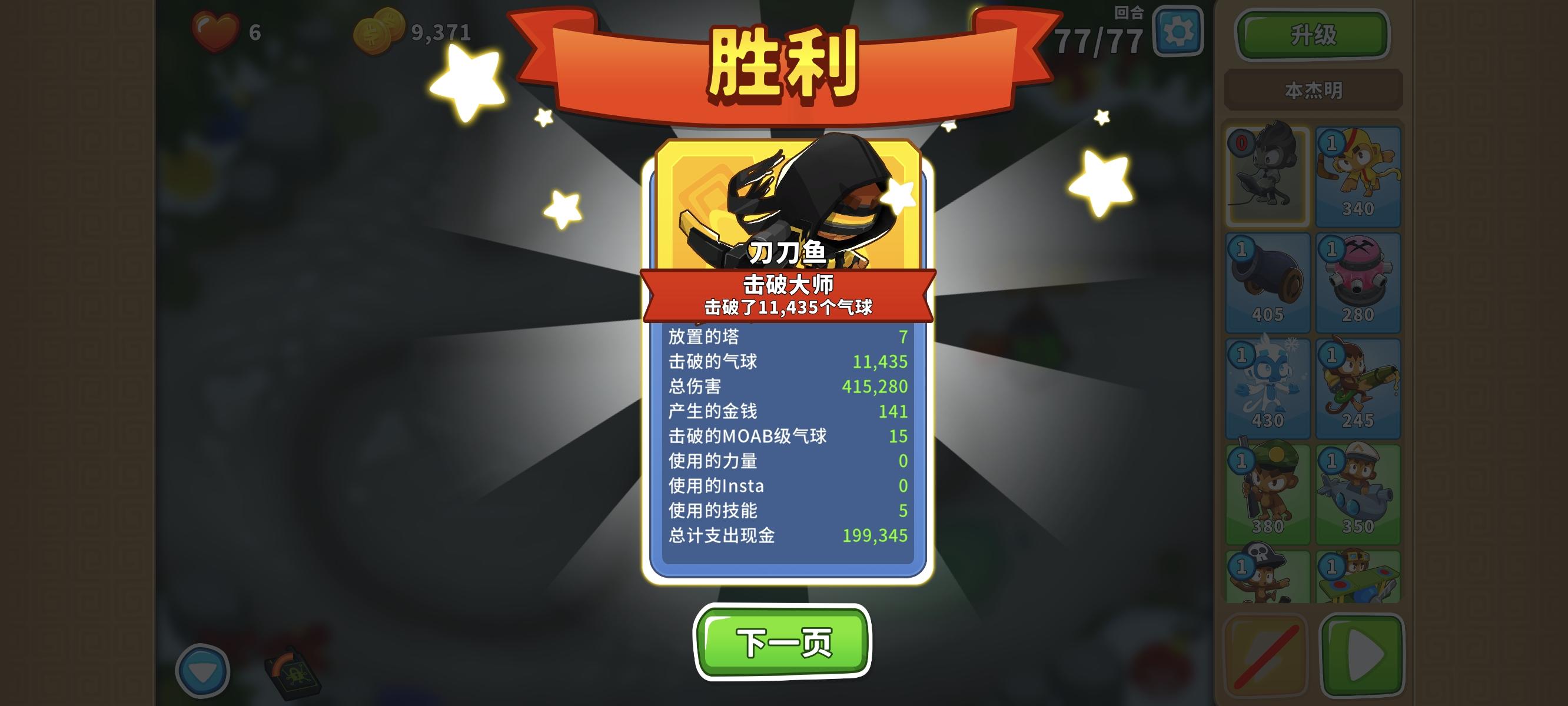 也是受猴友们启发去找精英充气机刷钱了因为是高级的八阶段充气机,为了保证战力上了之前刷钱拉的真太阳神,中路刺钉地毯顶掉一些复仇气球,还有一个缩小版国土防御。不过还是得不忘初心,剩下的位置刷了三个比较给力的加钱猴子(真能刷到加钱飞机还是挺惊喜的)。加上警长套装这套总共加钱40%,Boss战直接堆在一块,甚至连警长都不用上,迫击炮的落点也不用改,只需要不停点国土防御就能过了。还是不需要