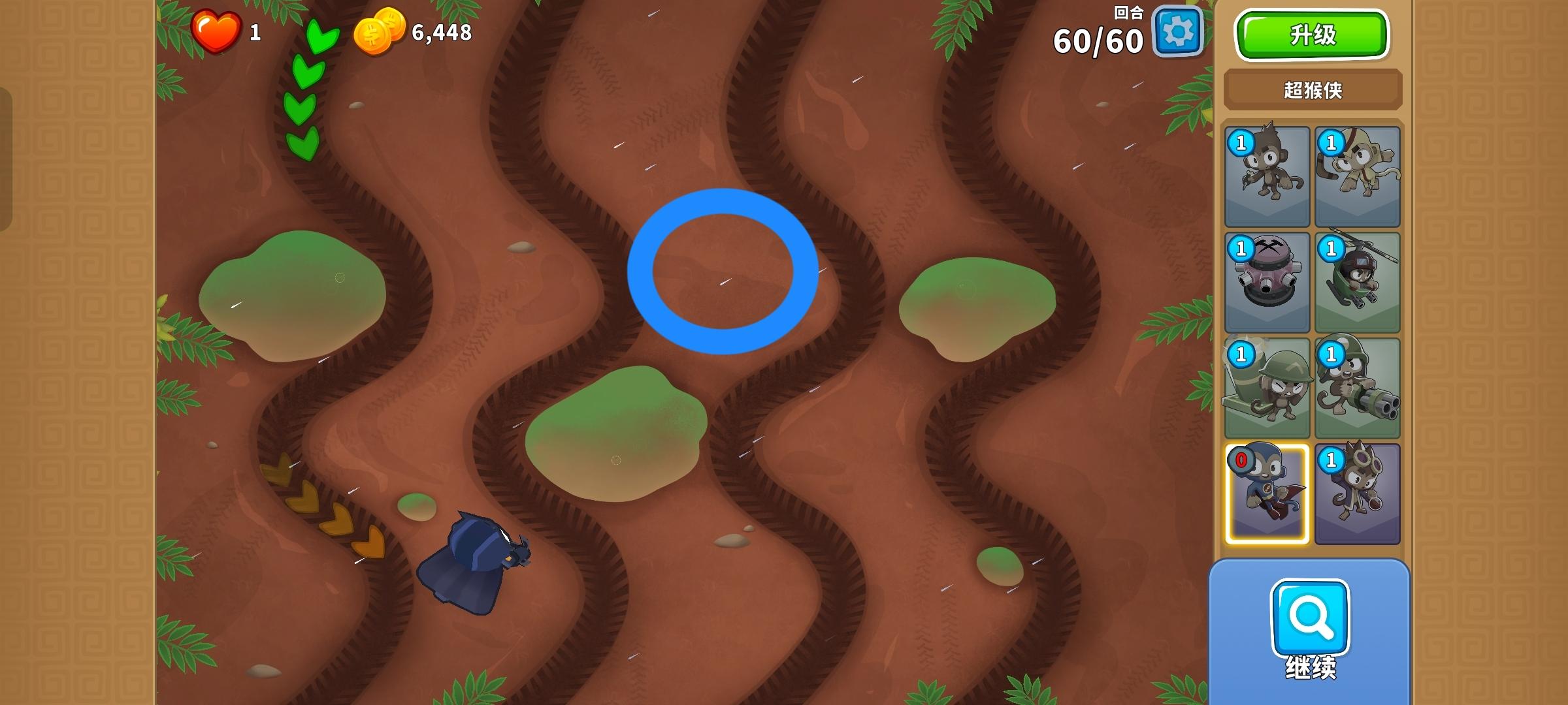 很简单,直接在圈内范围放下004超猴侠通过第59回合,等到BFB来时再不断用瞬移技能调整输出位置就行!#今天游戏圈发生了啥 #单机游戏 #气球塔防6 #游戏攻略 #游戏日常