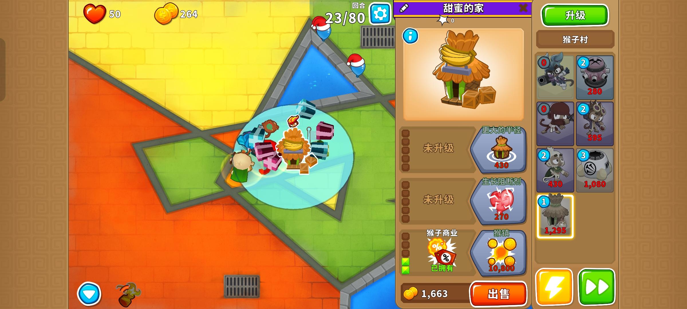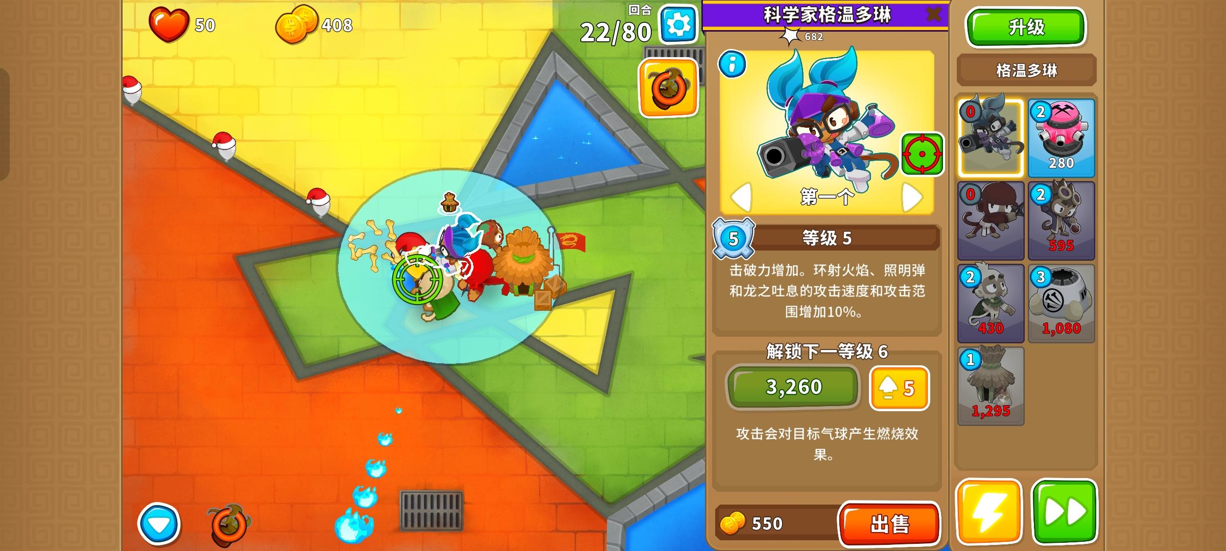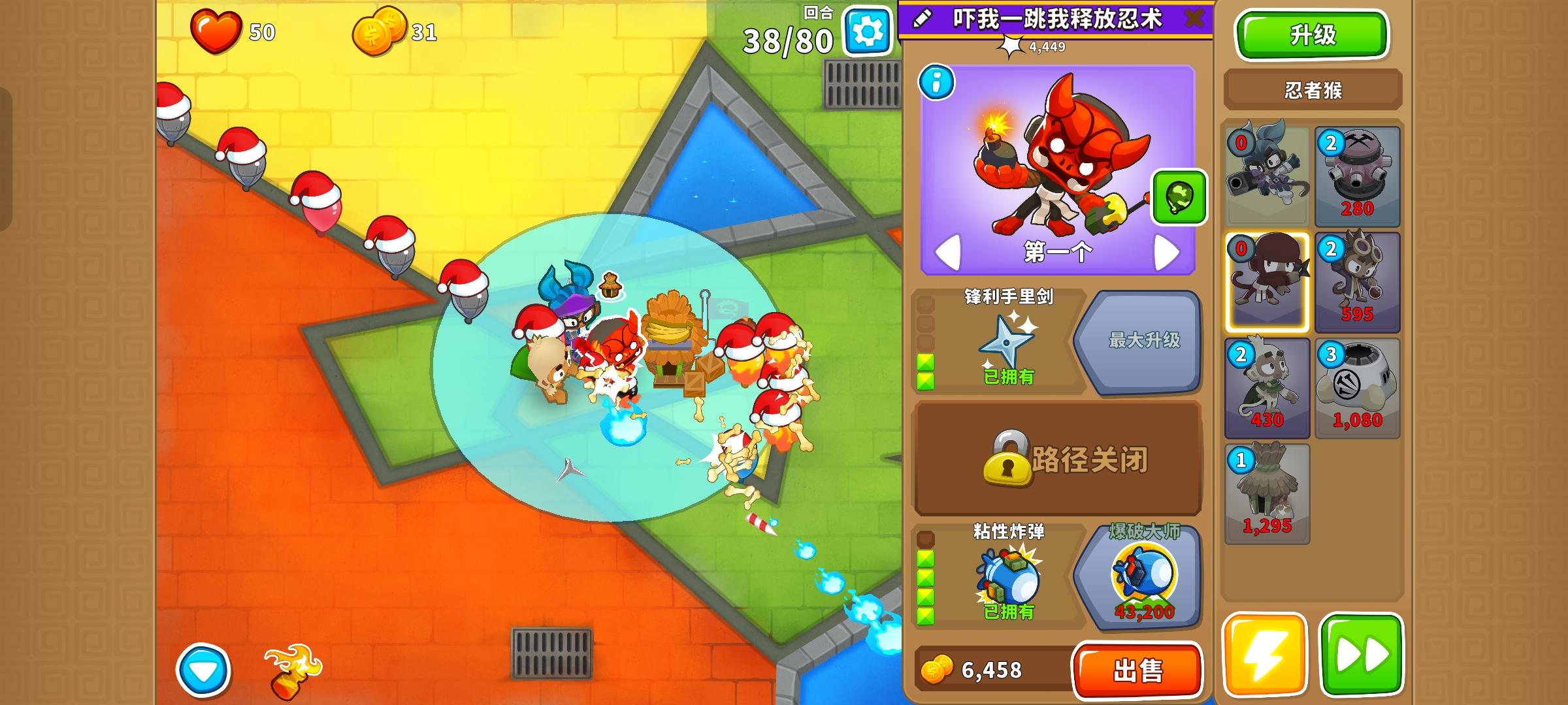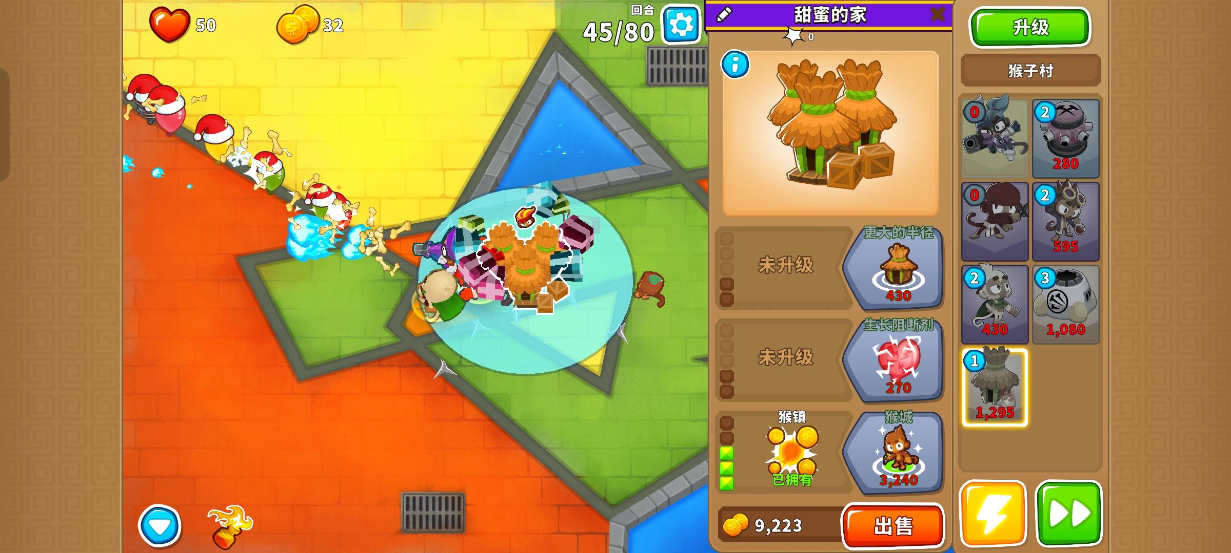 也是受猴友们启发去找精英充气机刷钱了因为是高级的八阶段充气机,为了保证战力上了之前刷钱拉的真太阳神,中路刺钉地毯顶掉一些复仇气球,还有一个缩小版国土防御。不过还是得不忘初心,剩下的位置刷了三个比较给力的加钱猴子(真能刷到加钱飞机还是挺惊喜的)。加上警长套装这套总共加钱40%,Boss战直接堆在一块,甚至连警长都不用上,迫击炮的落点也不用改,只需要不停点国土防御就能过了。还是不需要