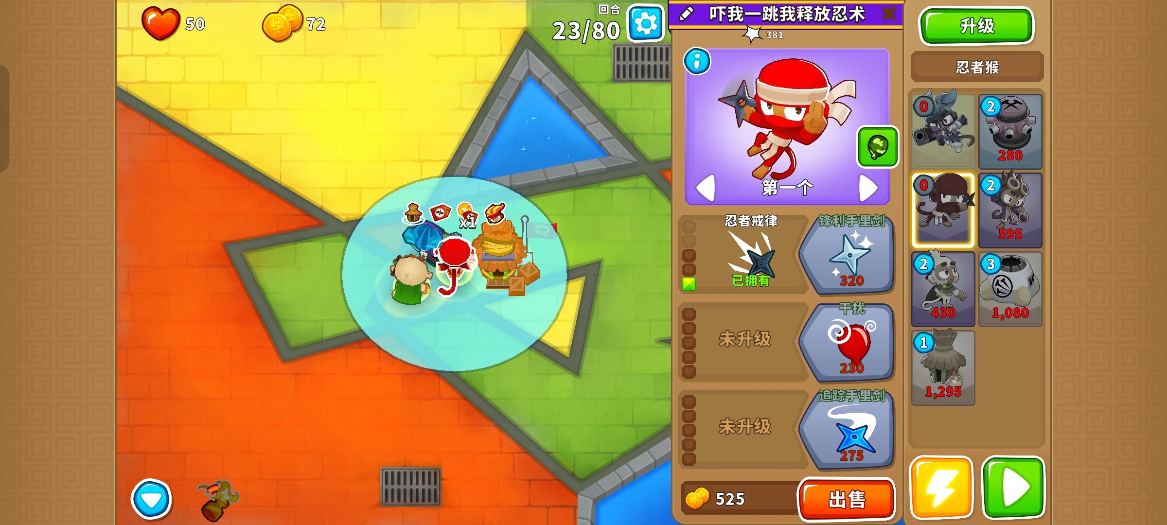 注意050海盗每次技能要拉到两个moab,要在前面的moab马上进家时释放,然后卖掉再买刷新技能cd。最后多一个moab用7级本杰明收尾。