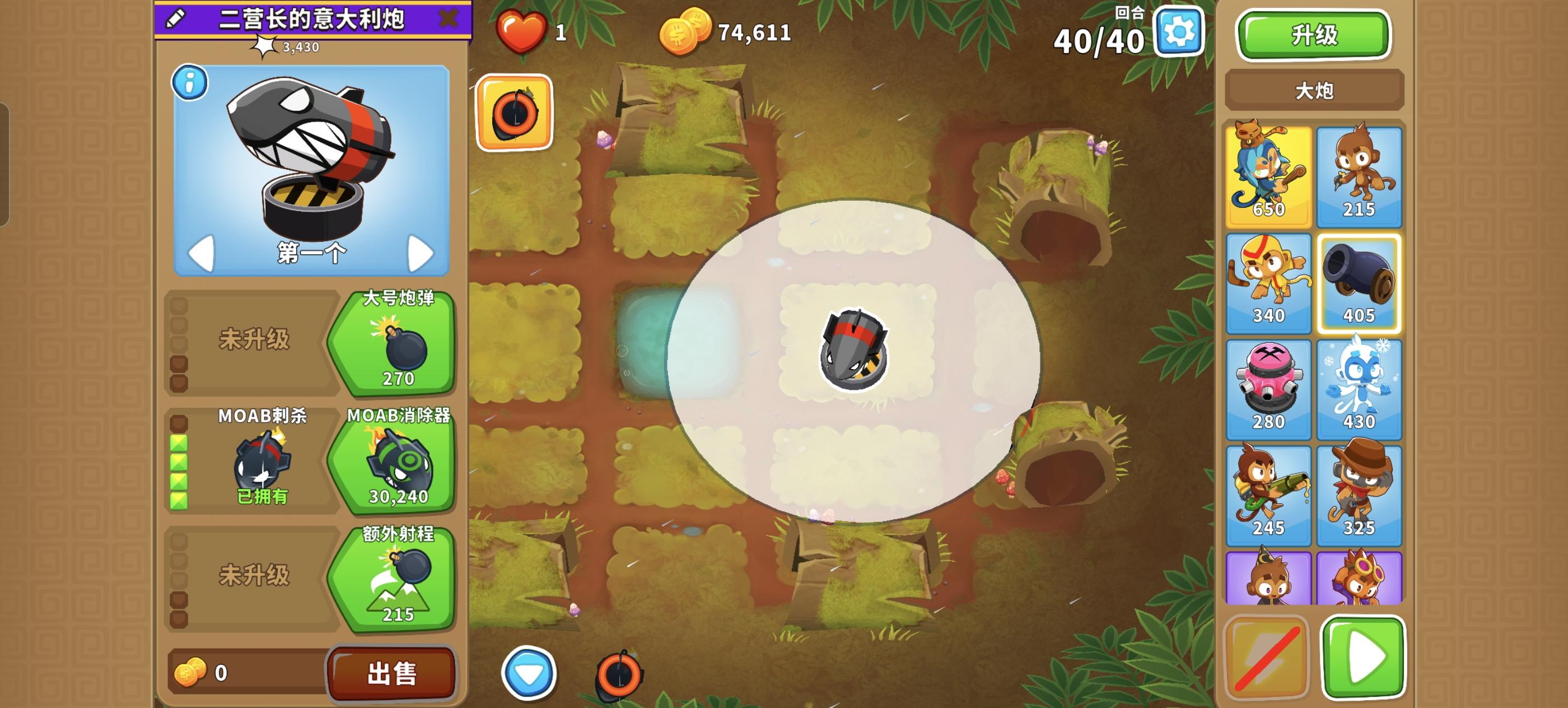 也是受猴友们启发去找精英充气机刷钱了因为是高级的八阶段充气机,为了保证战力上了之前刷钱拉的真太阳神,中路刺钉地毯顶掉一些复仇气球,还有一个缩小版国土防御。不过还是得不忘初心,剩下的位置刷了三个比较给力的加钱猴子(真能刷到加钱飞机还是挺惊喜的)。加上警长套装这套总共加钱40%,Boss战直接堆在一块,甚至连警长都不用上,迫击炮的落点也不用改,只需要不停点国土防御就能过了。还是不需要