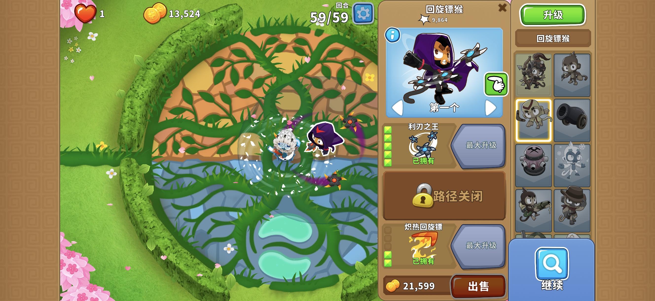 如图位置,分别摆放240冰猴以及502回旋镖猴,又是摆完挂机的一天。#气球塔防6 #高级挑战