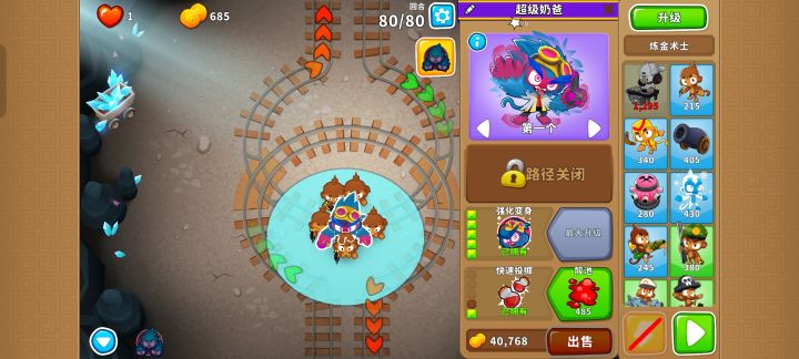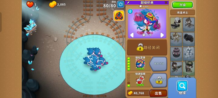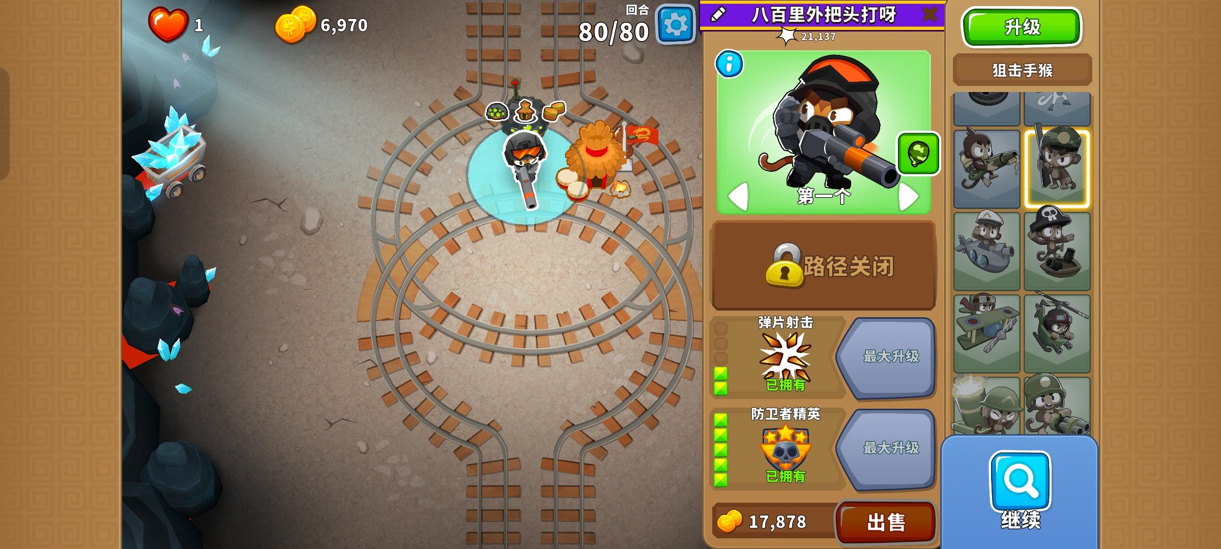 也是受猴友们启发去找精英充气机刷钱了因为是高级的八阶段充气机,为了保证战力上了之前刷钱拉的真太阳神,中路刺钉地毯顶掉一些复仇气球,还有一个缩小版国土防御。不过还是得不忘初心,剩下的位置刷了三个比较给力的加钱猴子(真能刷到加钱飞机还是挺惊喜的)。加上警长套装这套总共加钱40%,Boss战直接堆在一块,甚至连警长都不用上,迫击炮的落点也不用改,只需要不停点国土防御就能过了。还是不需要