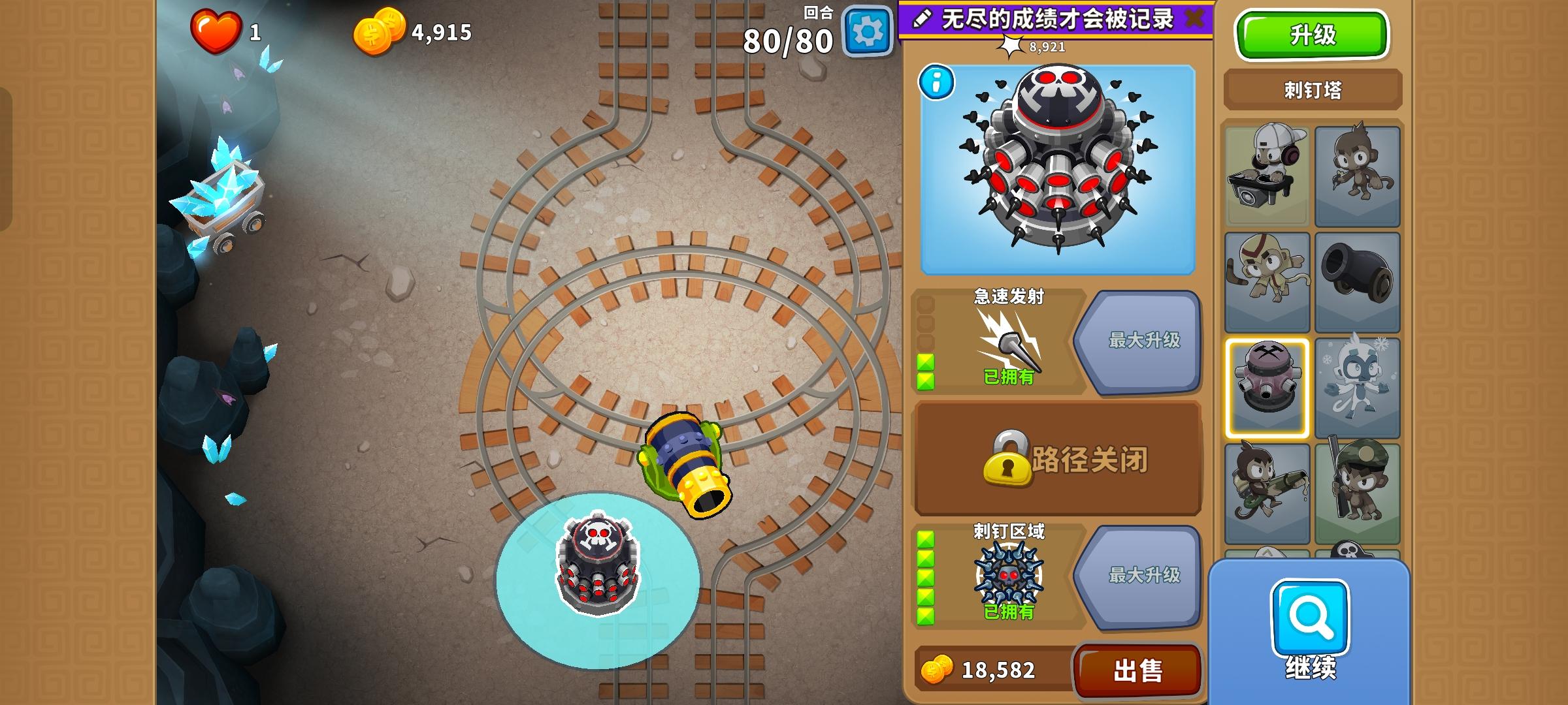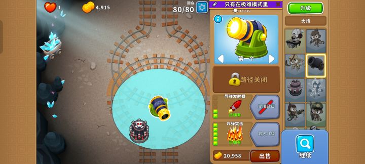 如图所示放置502图钉塔,摆完挂机,也可以420直升飞机加025狙击手猴加420炼金,#气球塔防6 #高级挑战