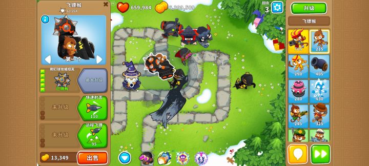 如图所示放置502图钉塔,摆完挂机,也可以420直升飞机加025狙击手猴加420炼金,#气球塔防6 #高级挑战