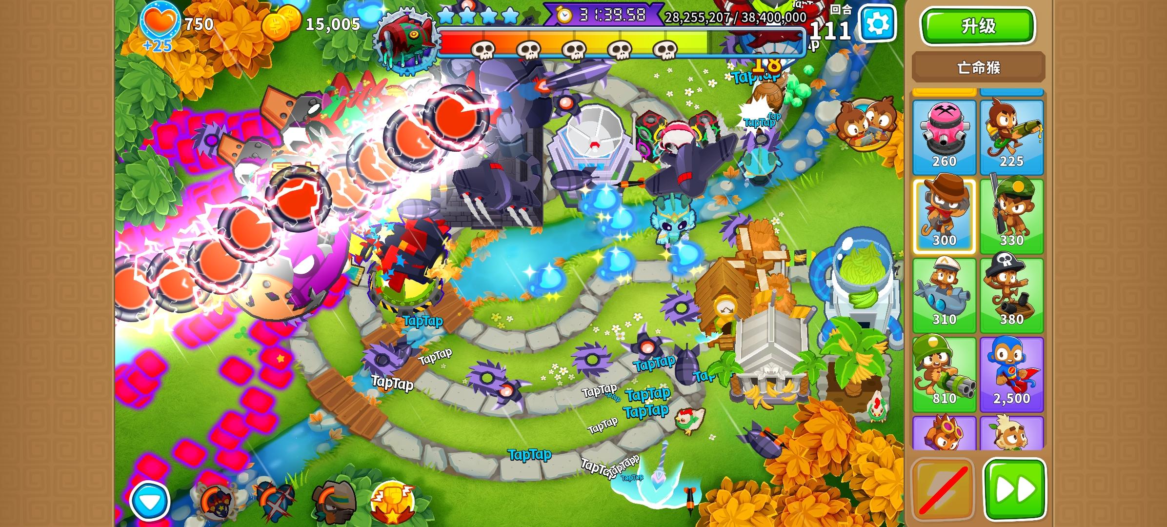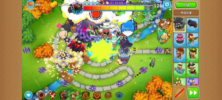 今天是2月2号,是我刚好两年前开始在40版本入坑气球塔防6的游戏纪念日。两年的付出也有了不少技术、经验和成就,期间也有不少用得得心应手的猴子,那就来盘点一下我和很多朋友都喜欢用的猴子吧!首先就是欢呼声最高的520-2221真太阳神终极形态(简称黑殿),虽然严格上说不属于模范,但它可以享受24种甚至更多种增益效果使输出伤害堪比模范甚至更高。超高伤害、攻速、穿透、范围和颜值,无人讨厌!除非在打菲茨