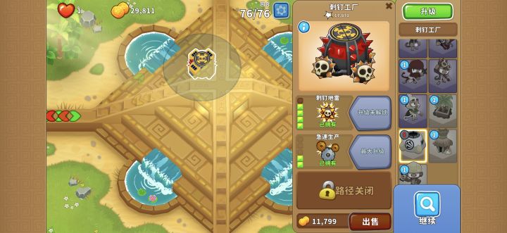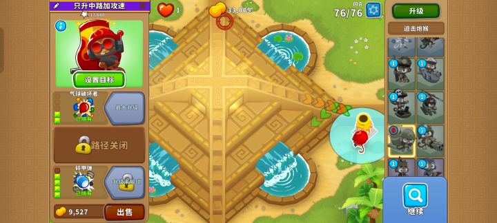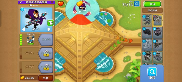 仍然有很多猴子可以单挑迷彩重生陶瓷气球群。500大刀王就是第一,都不需要支线!005大炮的被动技能也能清除所有气球!500冰猴也不需要支线,当然205也行,就是比较卡!等气球们全部聚集在一起时用040潜艇的技能一炸就行!当然501也是可以的!没想到052海盗猴也能硬打!420直升机飞行员也行,需要手操,而不是无脑追踪!同样需要手操的还有204迫击炮猴和420机枪猴!最后最快的当然是